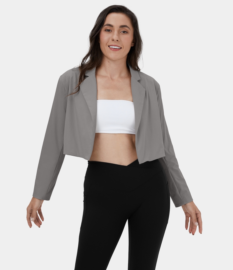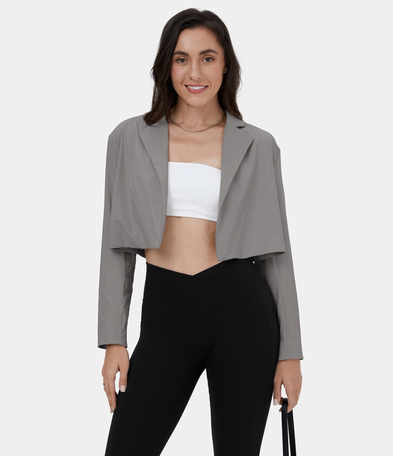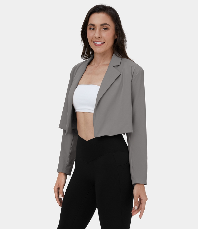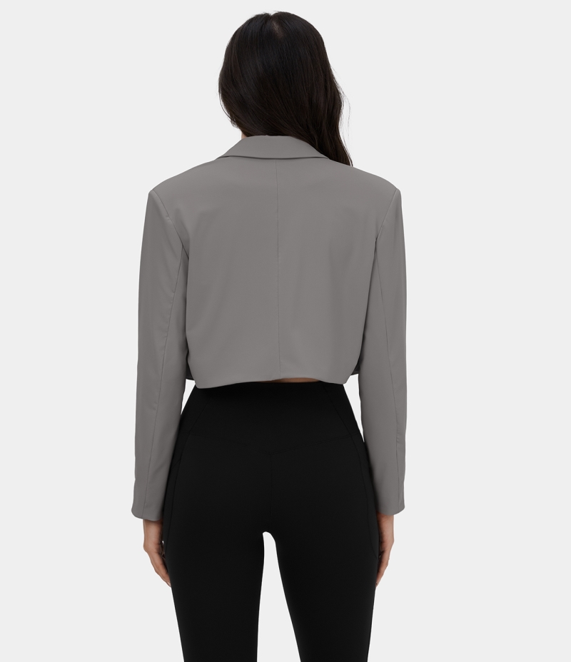 :: Halara Notched Collar Shoulder Pads Cropped Casual Blazer Women's Tops Steel Gray | VLZGOTK-54