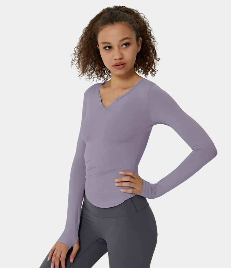 :: Halara Notched Thumb Hole Sports Women's Tops Light Purple | AEHJXBC-72