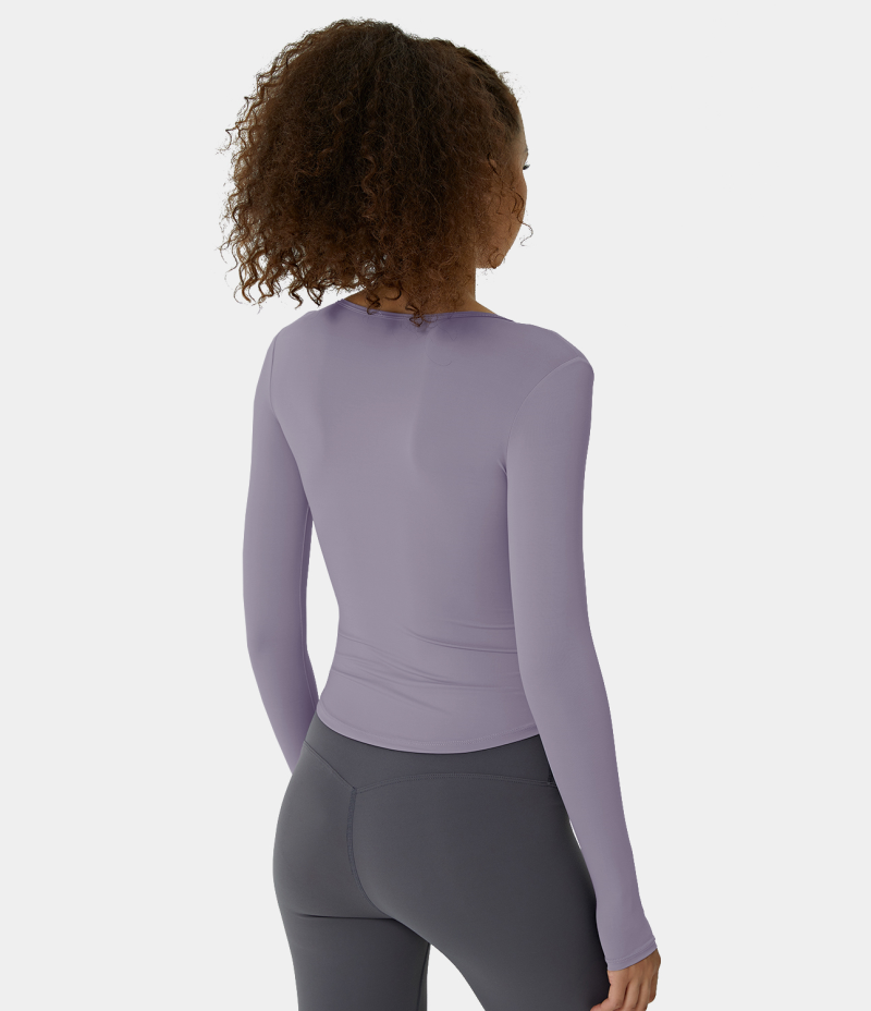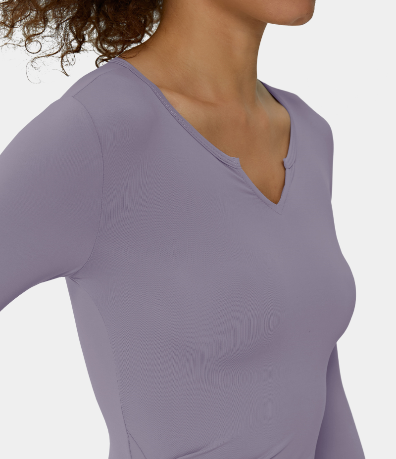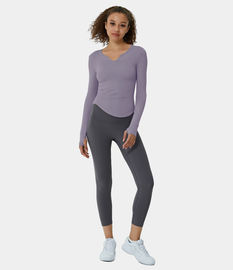 :: Halara Notched Thumb Hole Sports Women's Tops Light Purple | WLKCPIU-01