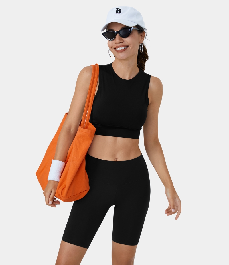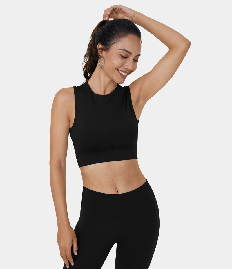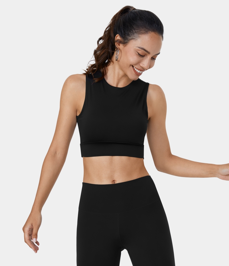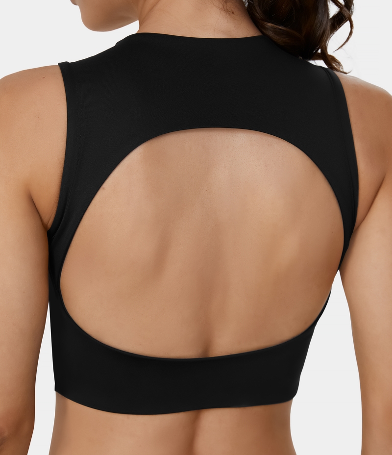 :: Halara Padded Cut out Backless Cropped Yoga Tank Women's Tops Black | DQERJMS-46