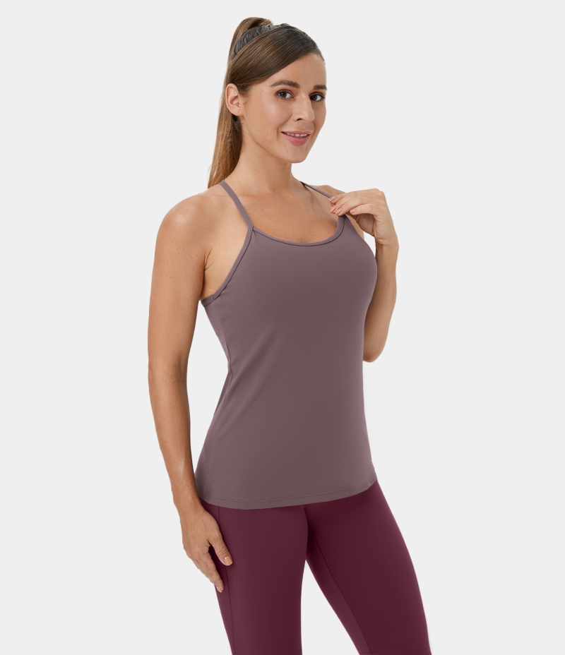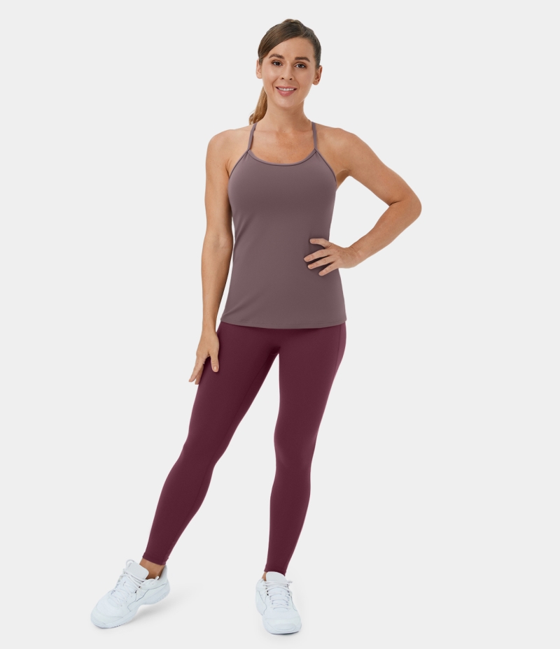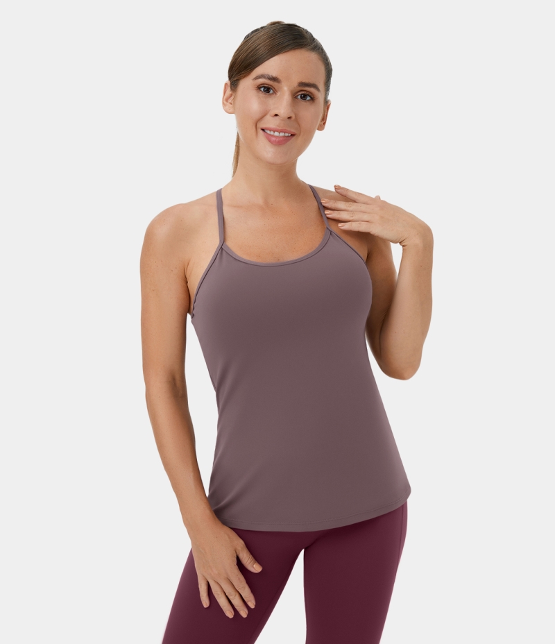 :: Halara Padded Y Back Workout Tank Women's Tops Dove Purple | RSWKIXO-59