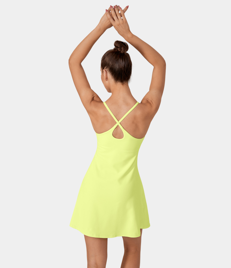 Halara Patitoff Flow Pet Hair Resistant 2-in-1 Flare Activity-Wannabe Women's Dress Lime Sherbet | 824396-JWV