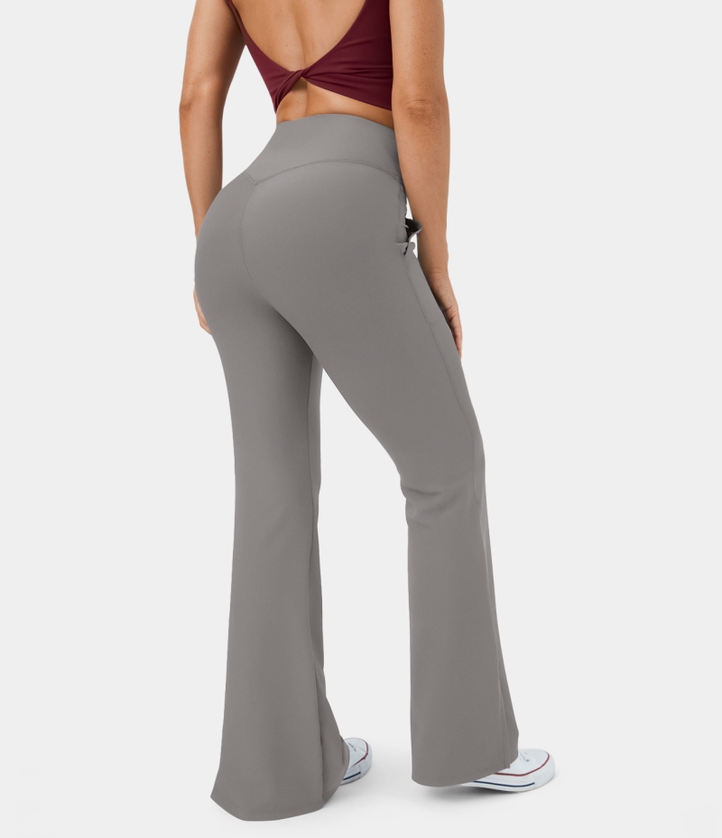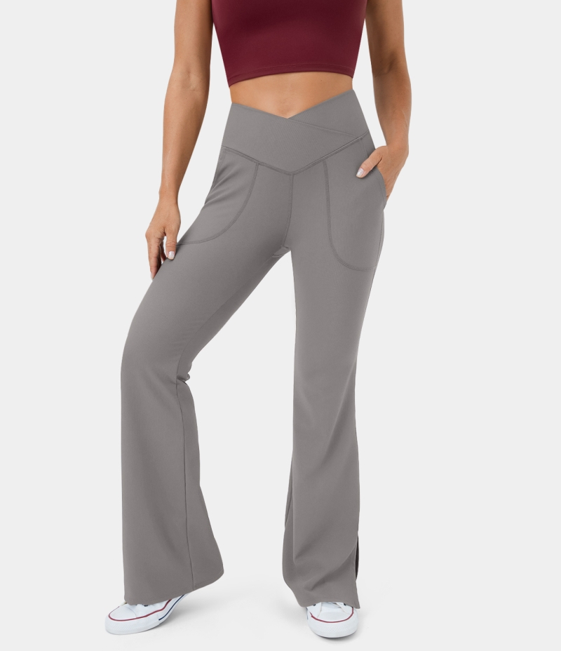 :: Halara Patitoff Flow Pet Hair Resistant Crossover Pocket Split Hem Yoga Flare-Smile Women's Leggings Gull | 907583-XDP