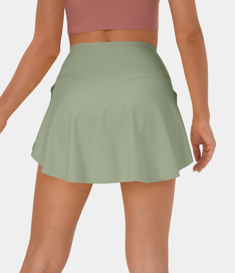 Halara Patitoff Flow Pet Hair Resistant Crossover Side Pocket 2-in-1 Activity-Lucid Women's Skirts Seagrass | 859463-PZC