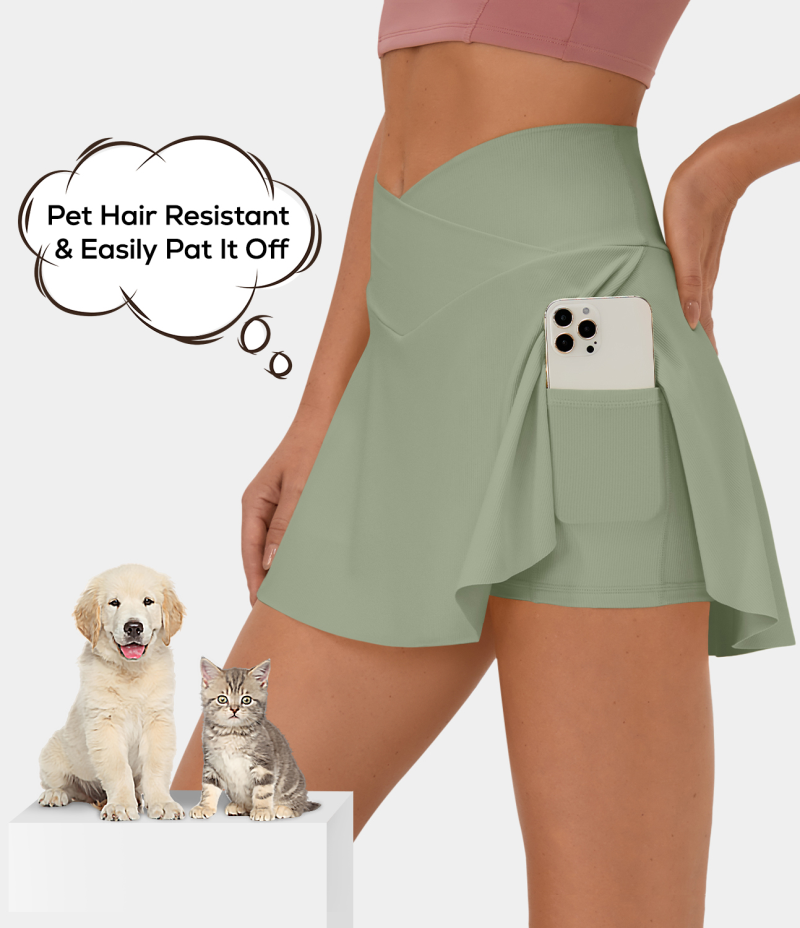 :: Halara Patitoff Flow Pet Hair Resistant Crossover Side Pocket 2-in-1 Activity-Lucid Women's Skirts Seagrass | 859463-PZC