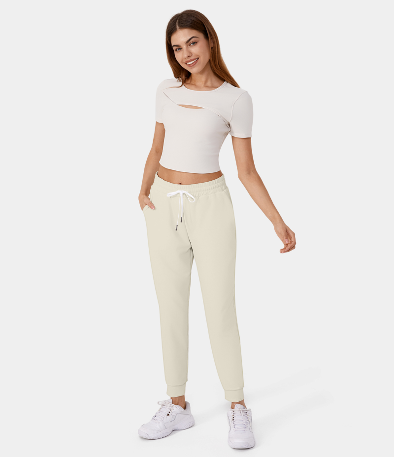 :: Halara Patitoff Flow Pet Hair Resistant High Waisted Drawstring Side Pocket 7/8 Women's Jogger Baby's Breath | 435789-MVE