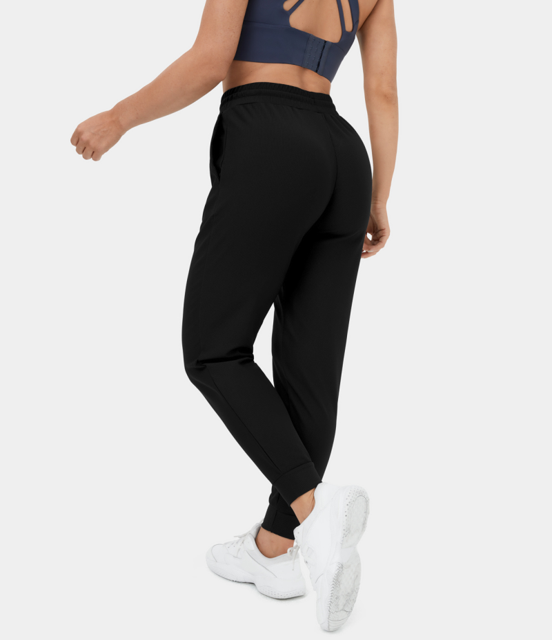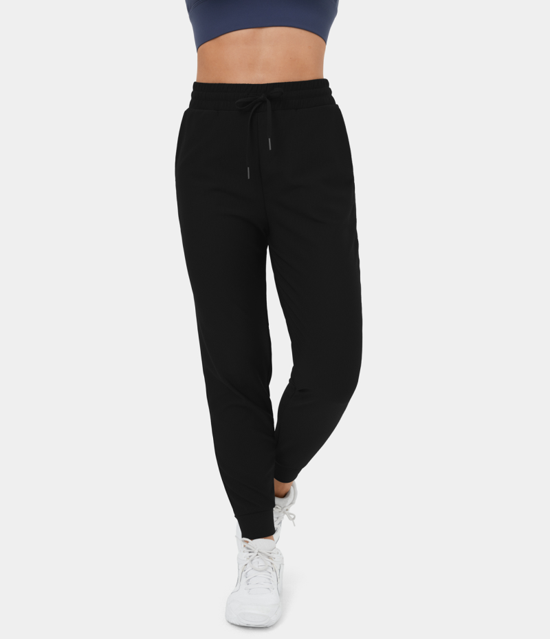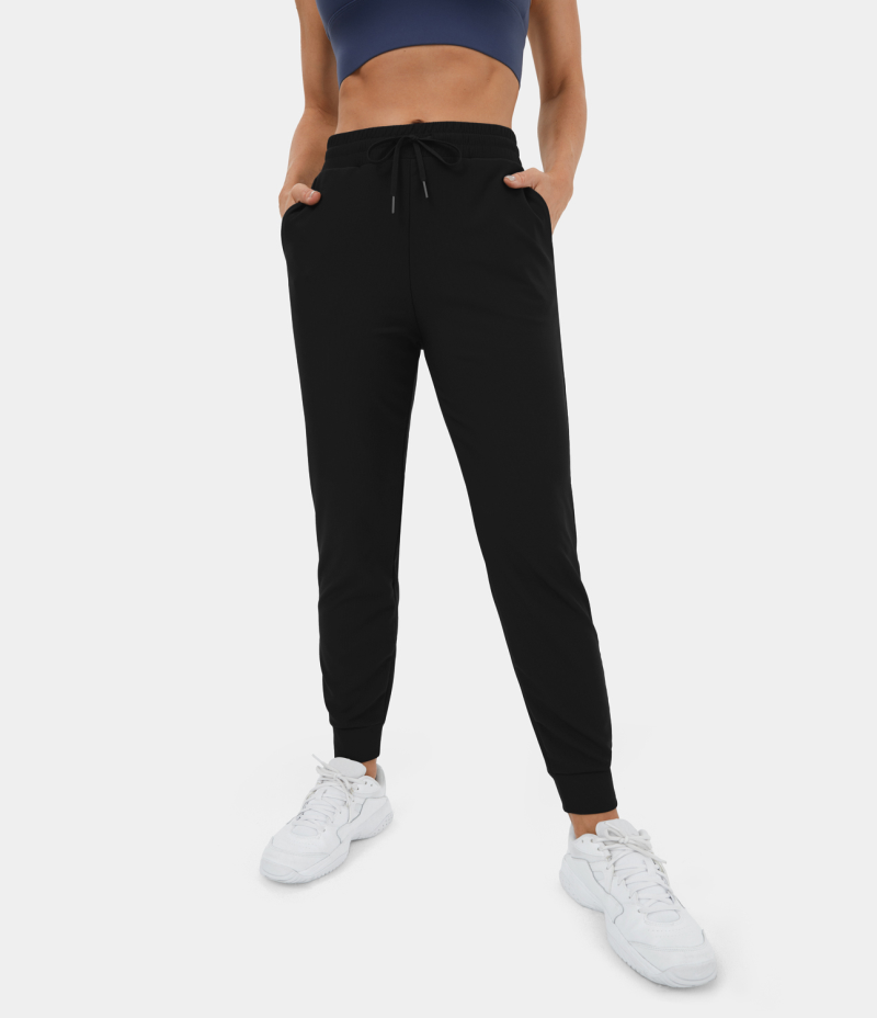 :: Halara Patitoff Flow Pet Hair Resistant High Waisted Drawstring Side Pocket 7/8 Women's Jogger Black | 517948-EJW