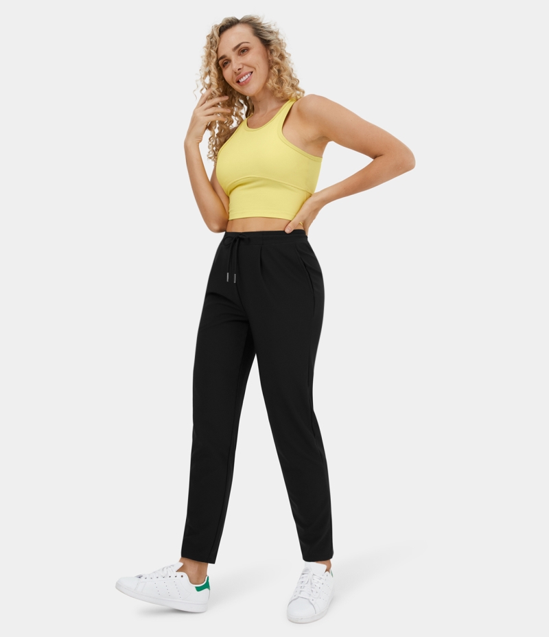 :: Halara Patitoff Flow Pet Hair Resistant High Waisted Drawstring Side Pocket Women's Pants Black | 156937-TMC
