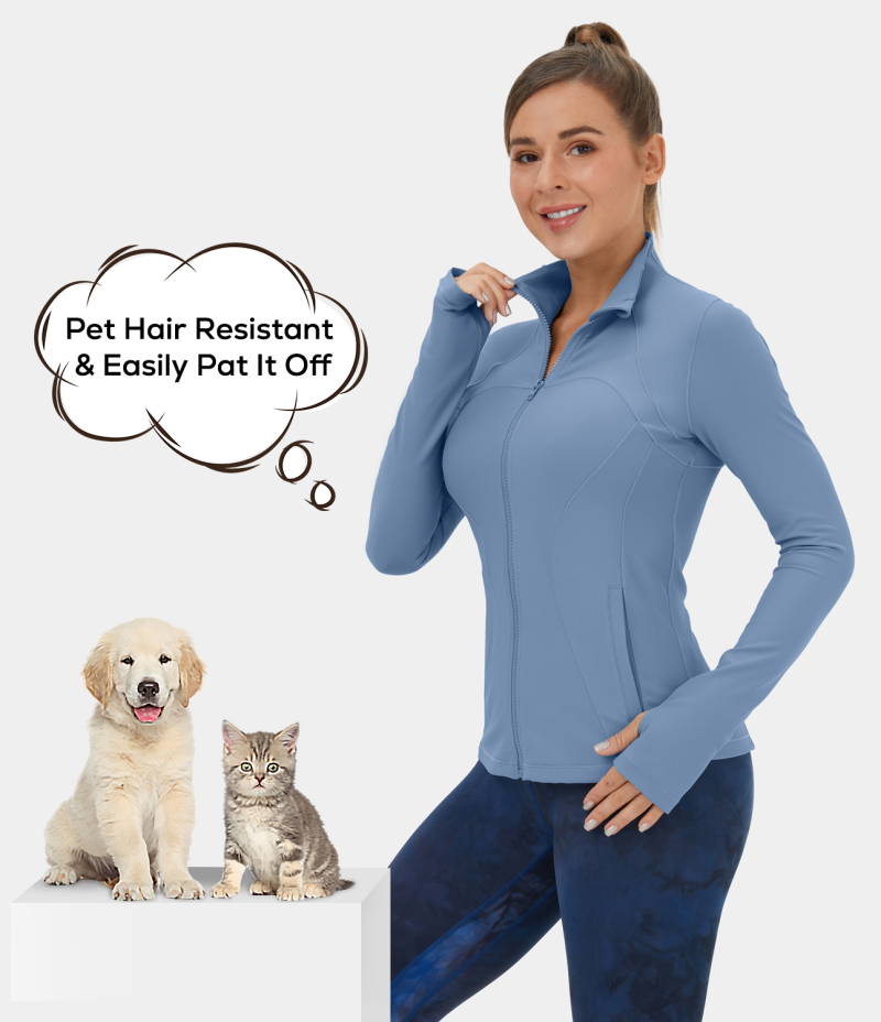:: Halara Patitoff Flow Pet Hair Resistant Stand Collar Zipper Side Pocket Thumb Hole Casual Jacket Women's Tops Endless Sky | PUVJLOZ-43
