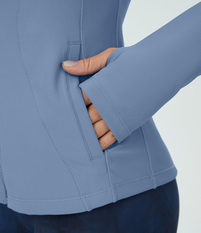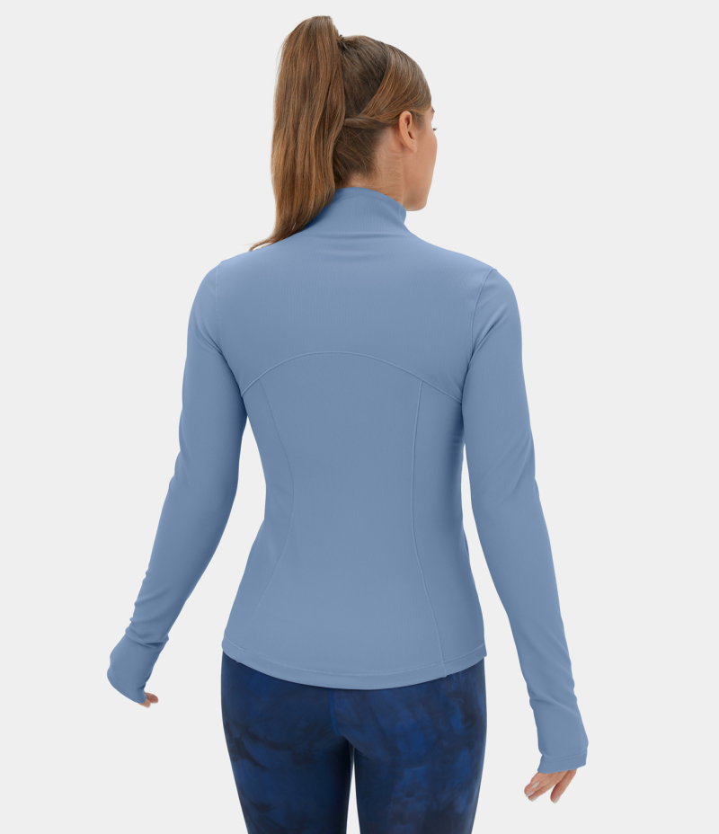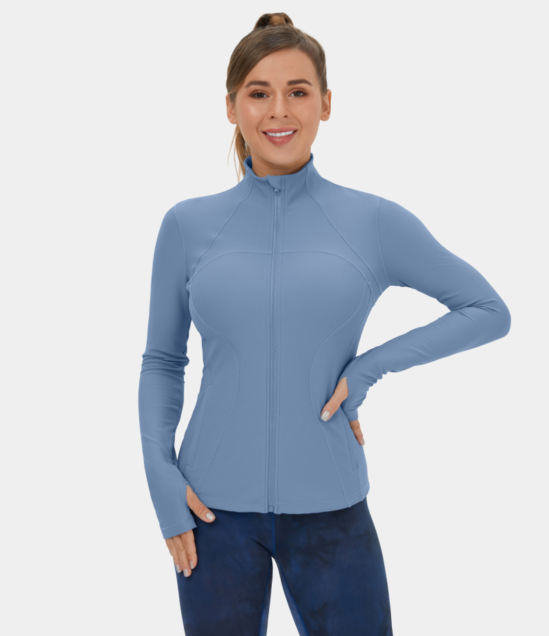 Halara Patitoff Flow Pet Hair Resistant Stand Collar Zipper Side Pocket Thumb Hole Casual Jacket Women's Tops Endless Sky | PUVJLOZ-43