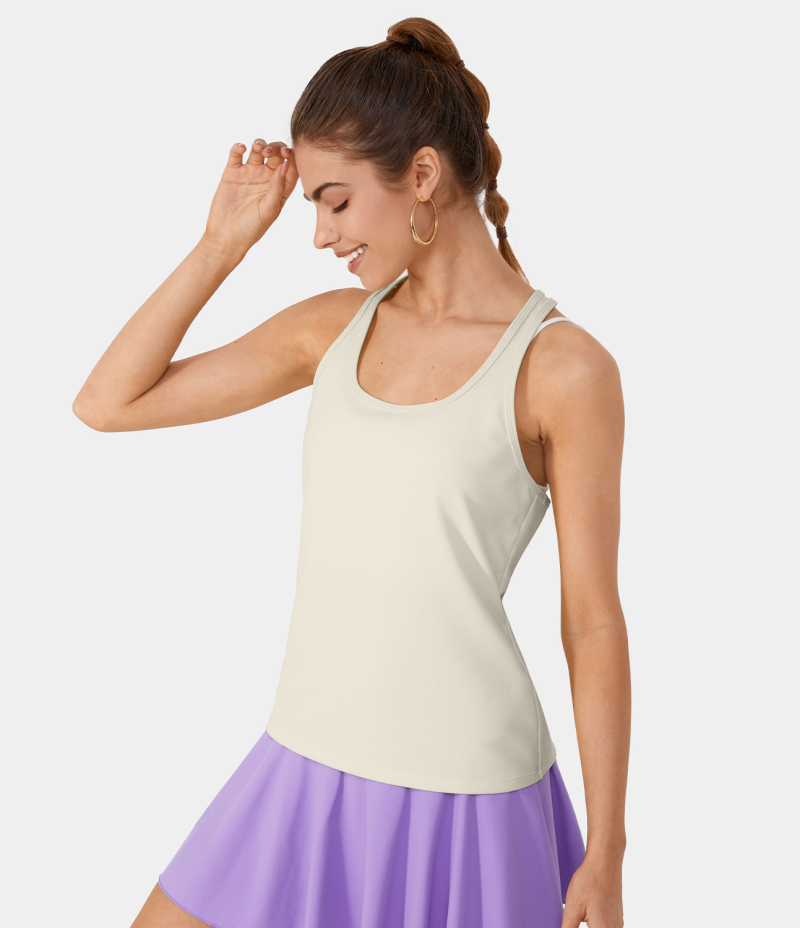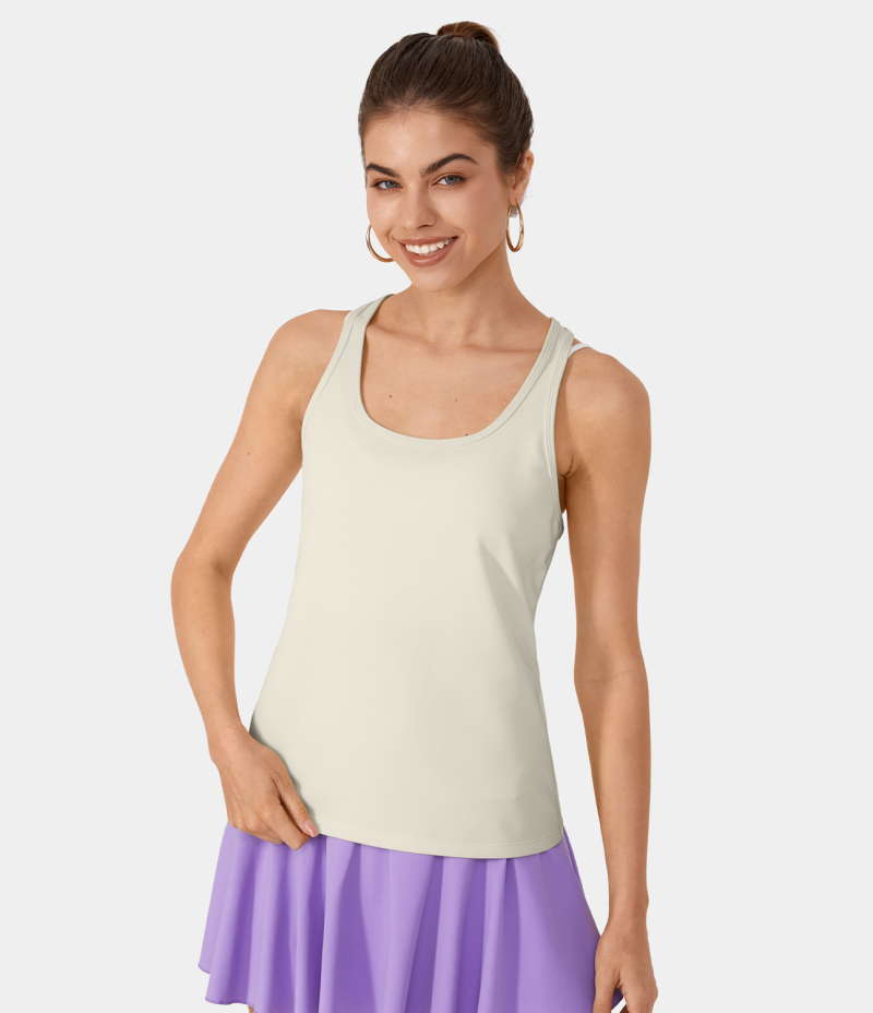 :: Halara Patitoff Flow Pet Hair Resistant U Neck Racerback Tank Women's Tops Baby's Breath | SLNMPDX-38