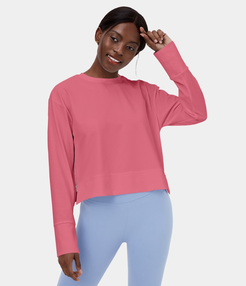 Halara Patitoff Flow Pet Hair Resistant Zipper Split Cropped Casual Sports Sweatshirt Women's Tops Desert Rose | TWUXJMQ-89