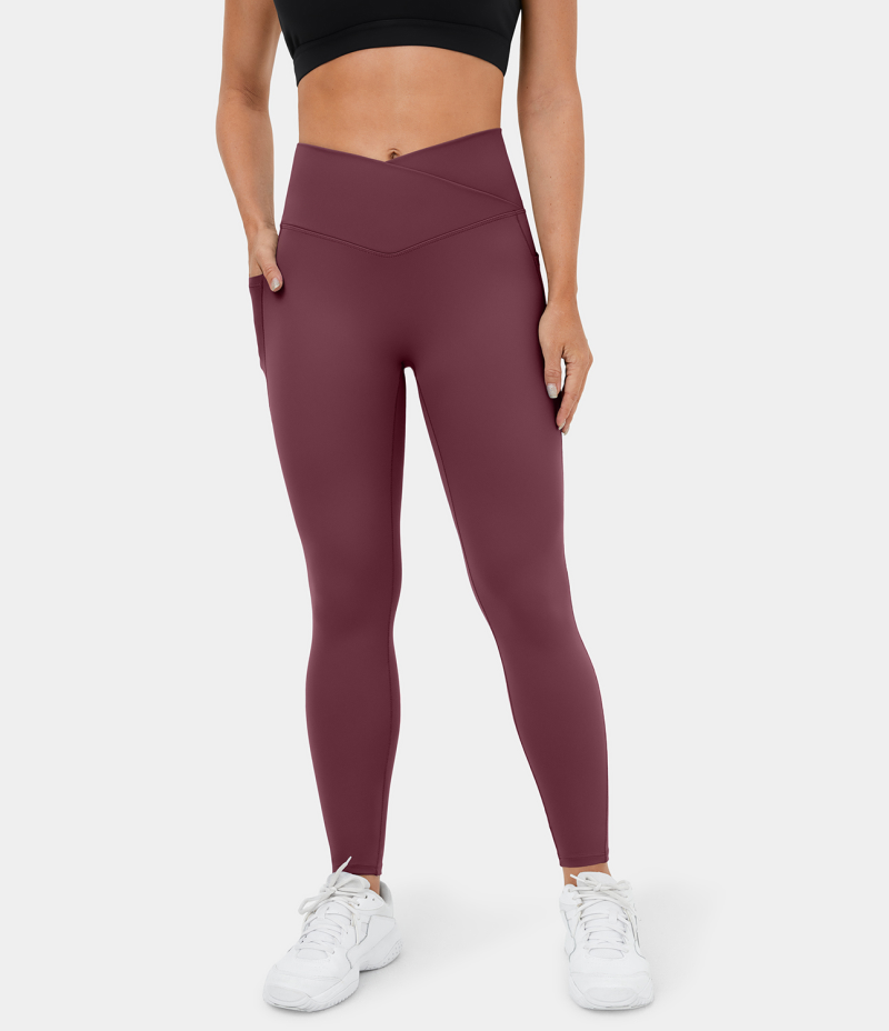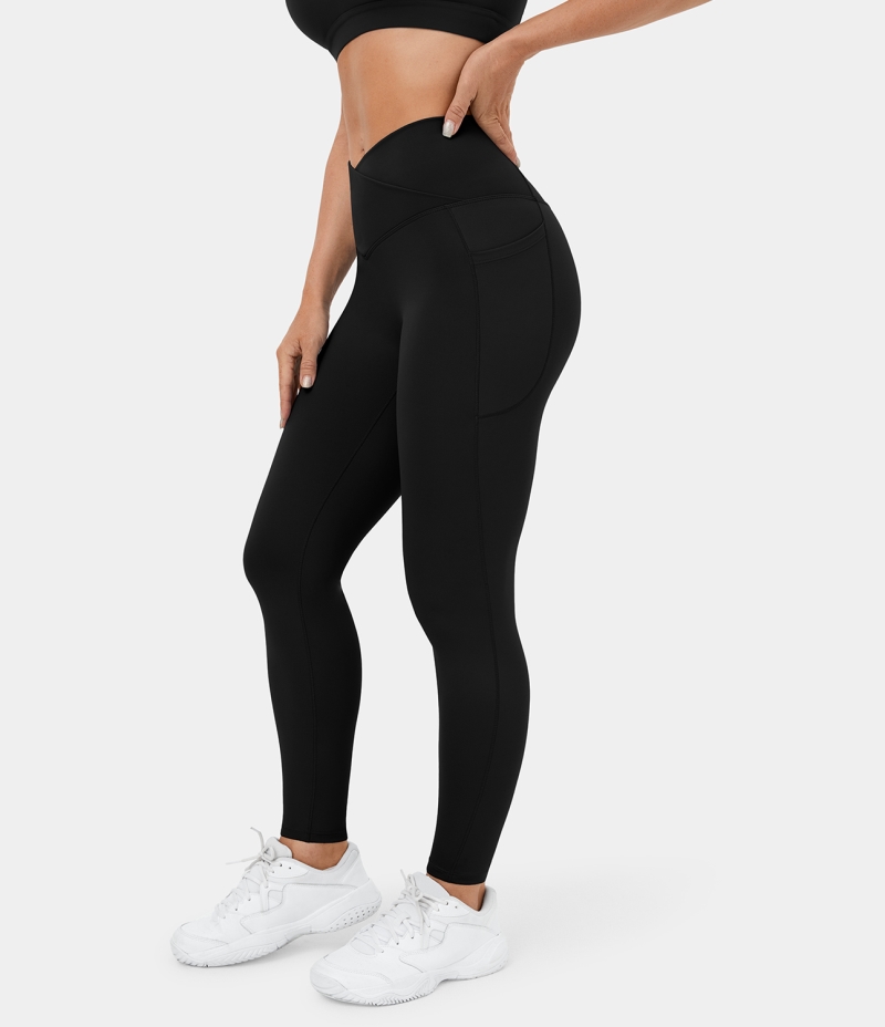 :: Halara Patitoff Pet Hair Resistant Fleece Lined Crossover Side Pocket Casual 7/8 Women's Leggings Black | 935840-NFG
