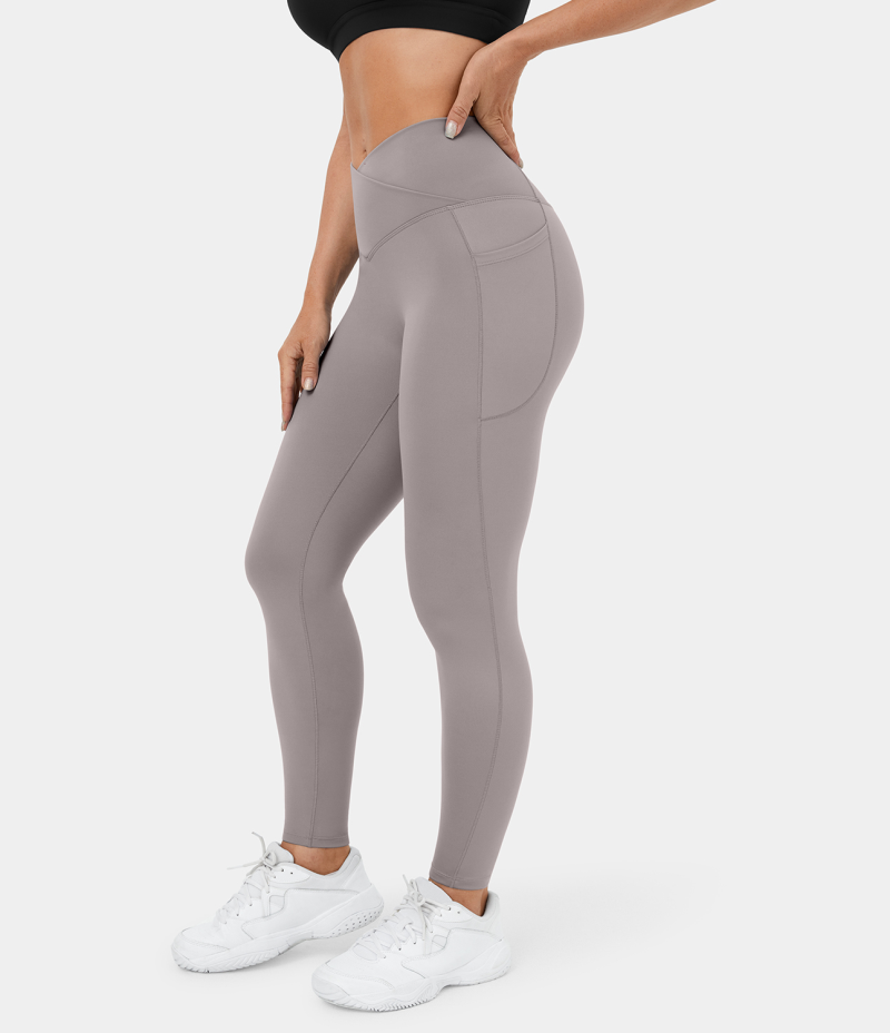 :: Halara Patitoff Pet Hair Resistant Fleece Lined Crossover Side Pocket Casual 7/8 Women's Leggings Gull Gray | 056297-IZC