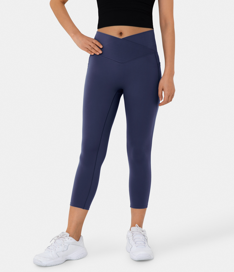 :: Halara Patitoff Pet Hair Resistant High Waisted Crossover Plain Capri Women's Leggings Patriot Blue | 910762-WUG