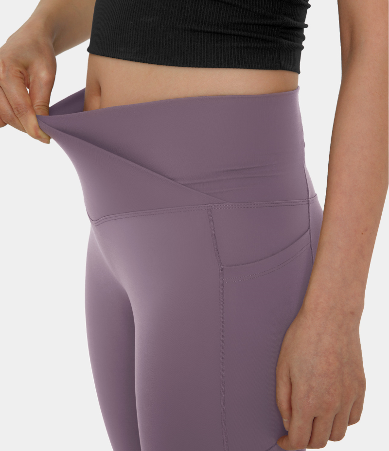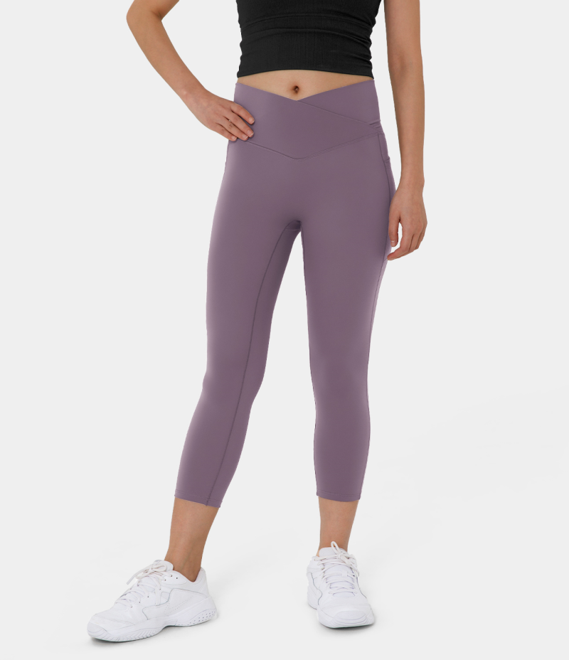 :: Halara Patitoff Pet Hair Resistant High Waisted Crossover Plain Capri Women's Leggings Very Grape | 261795-MBE