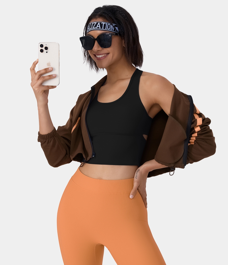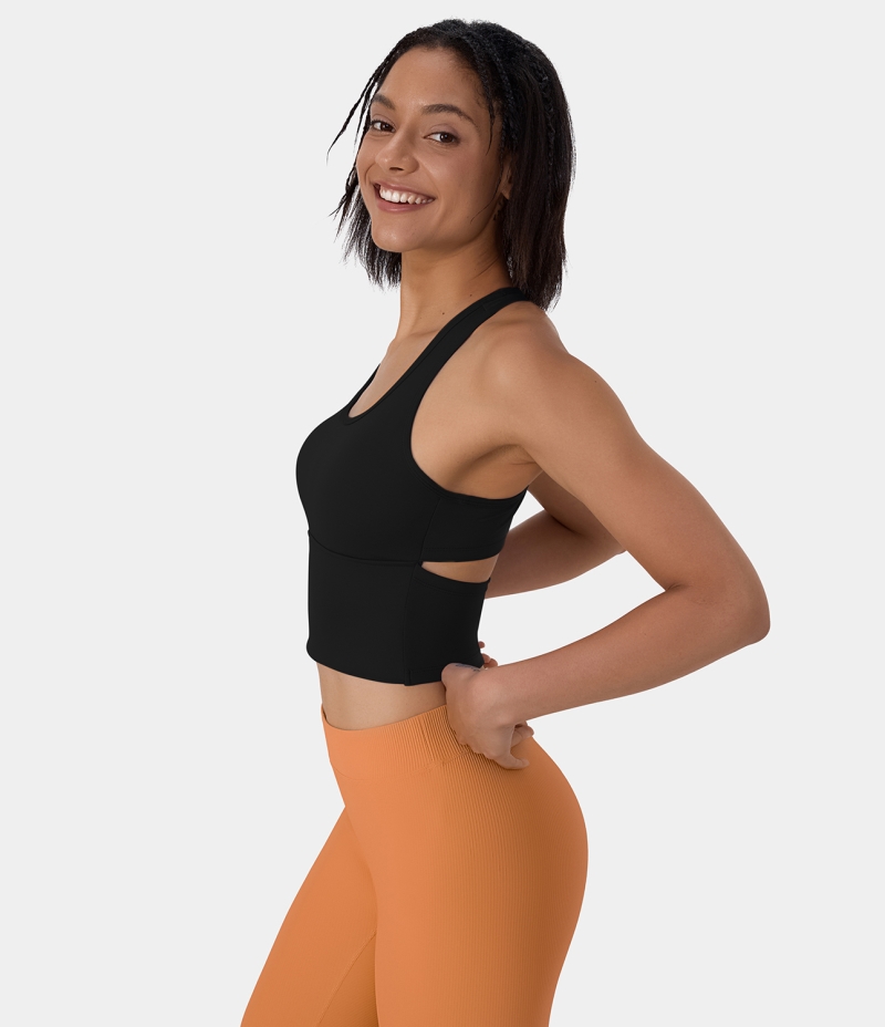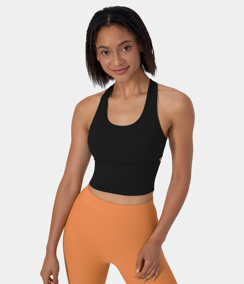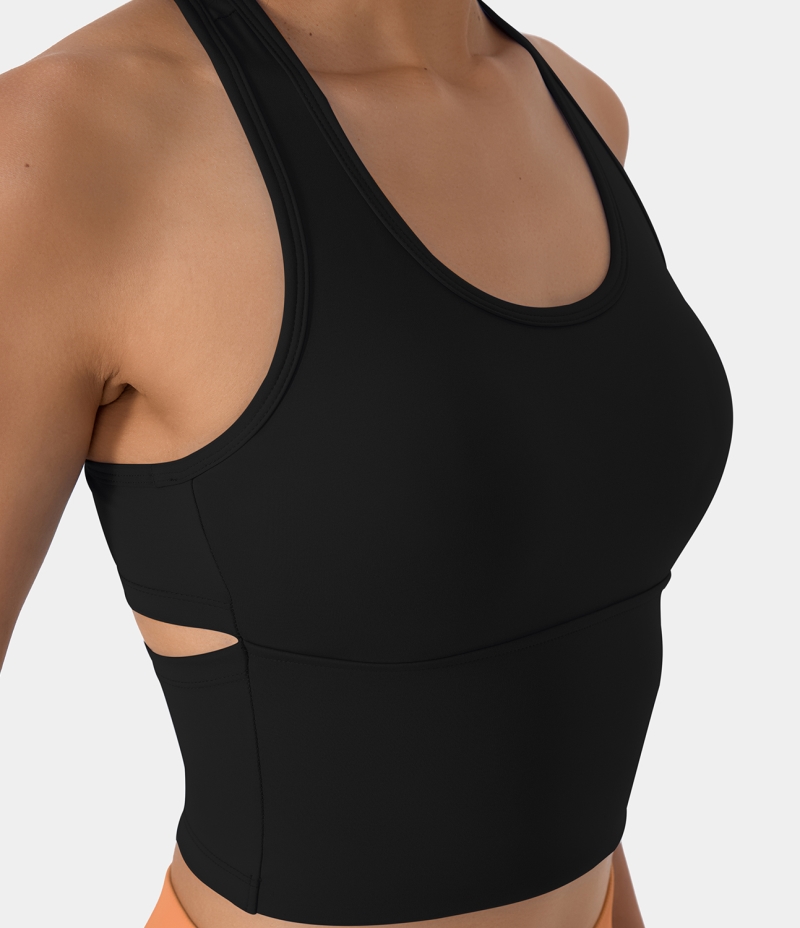 :: Halara Patitoff Pet Hair Resistant Racerback Cut Out Yoga Cropped Tank Women's Tops Black | MLXBOZP-32