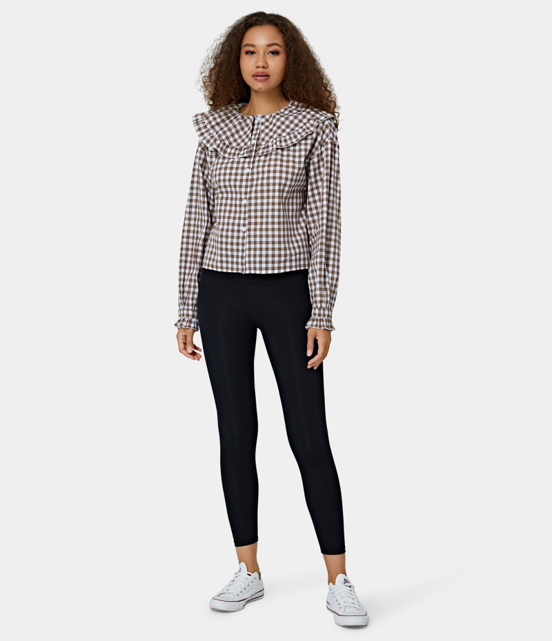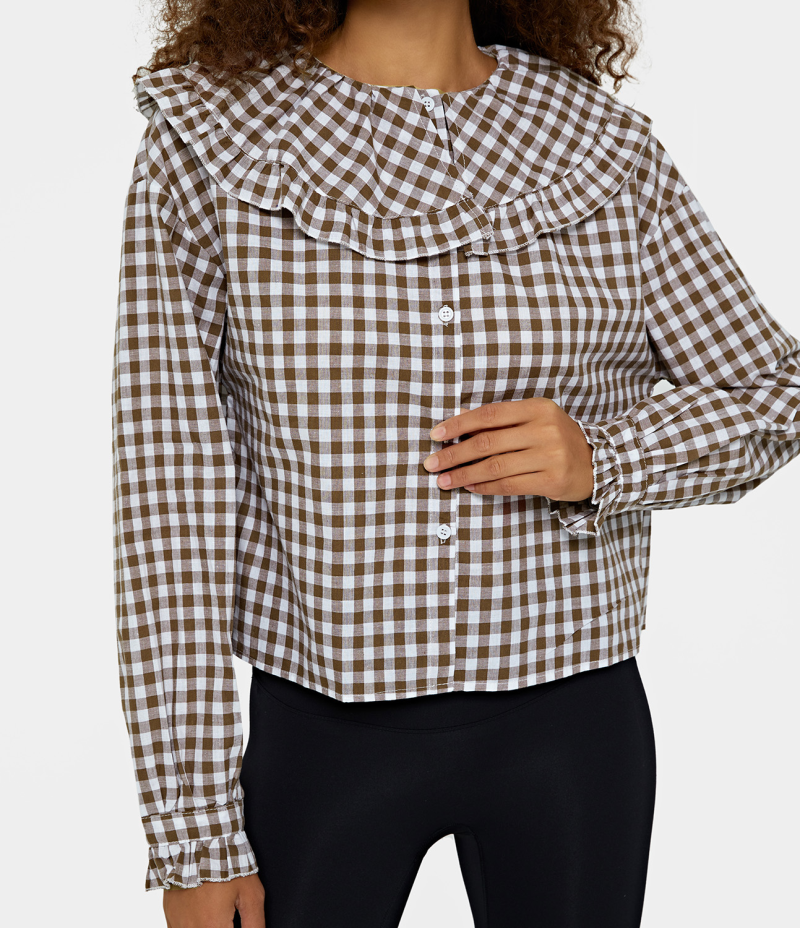 Halara Peter Pan Collar Button Front Plaid Blouse Women's Tops Dark Mauve | JOABZQM-30
