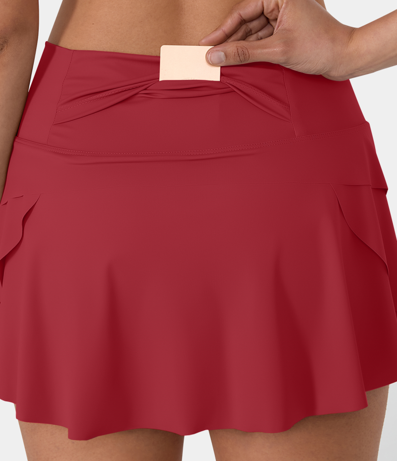 :: Halara Plain 2-in-1 Back Waistband Pocket Dance Women's Skirts Scarlet Smile | 035461-HRU