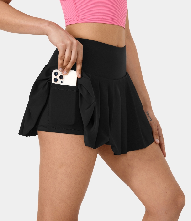 :: Halara Plain 2-in-1 Side Pocket Pleated Tennis Women's Skirts Black | 074981-VIG