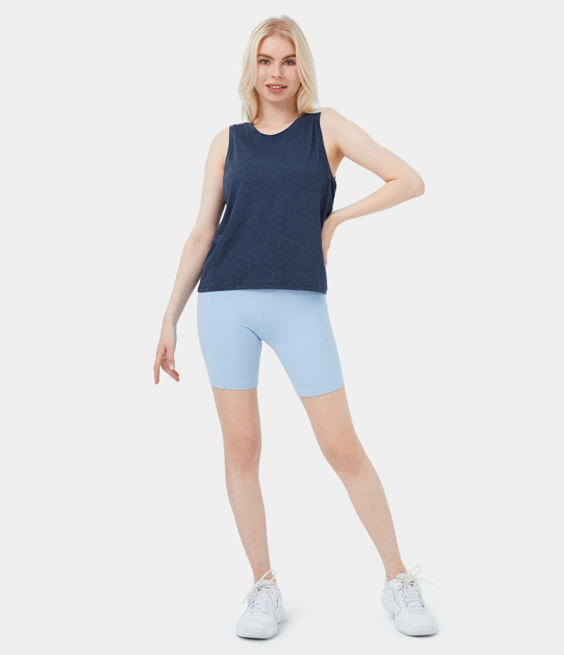 :: Halara Plain Crew Neck Yoga Tank Women's Tops Oceana | KWOCSUT-91