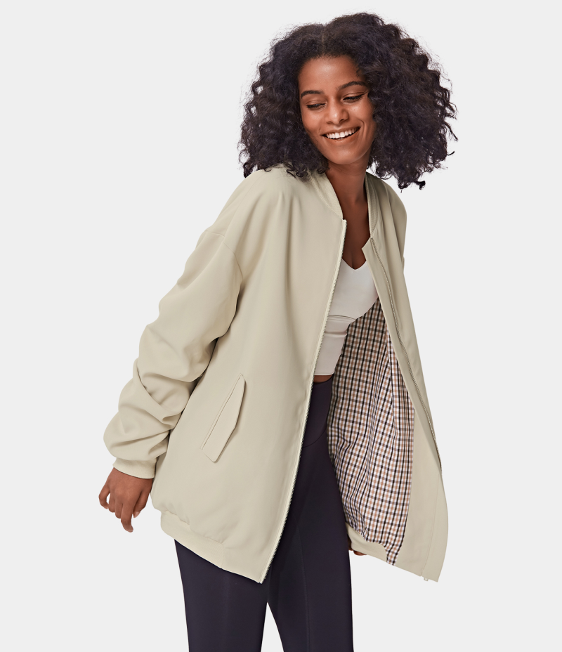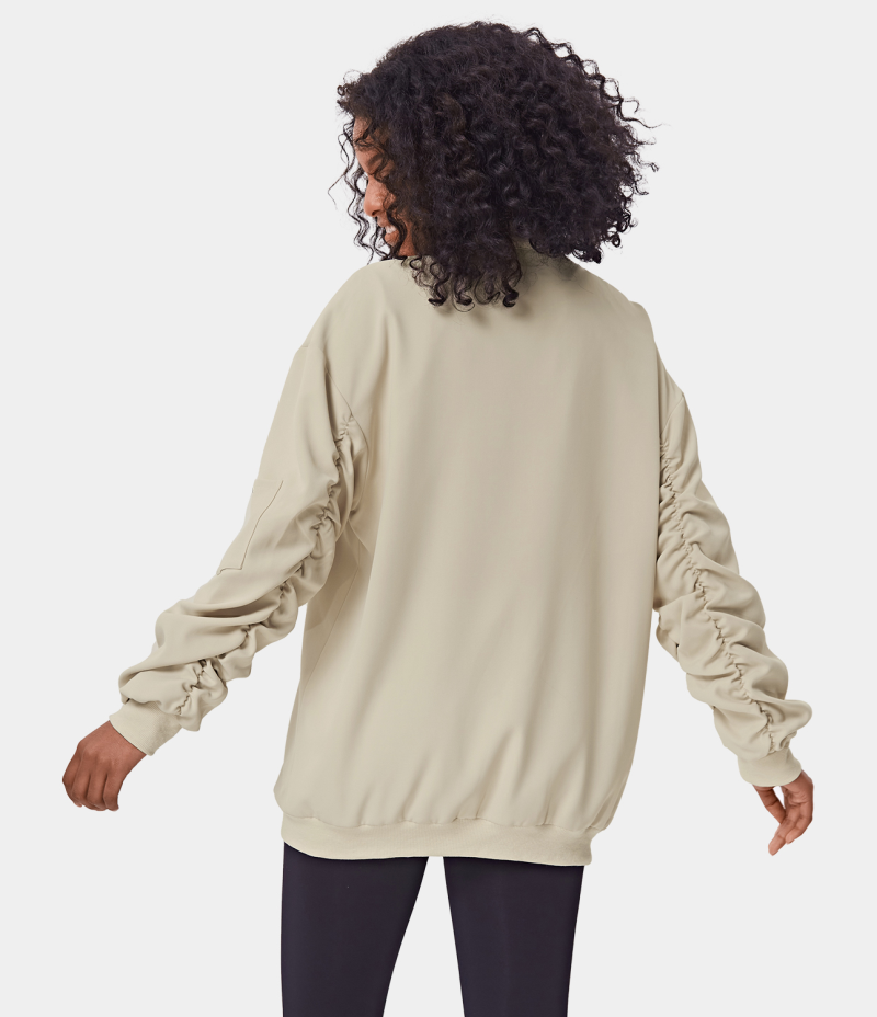 :: Halara Plain Ruched Zipper Jacket Women's Tops Light Beige | AGYCIHO-82