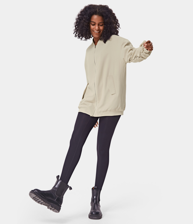 Halara Plain Ruched Zipper Jacket Women's Tops Light Beige | AGYCIHO-82