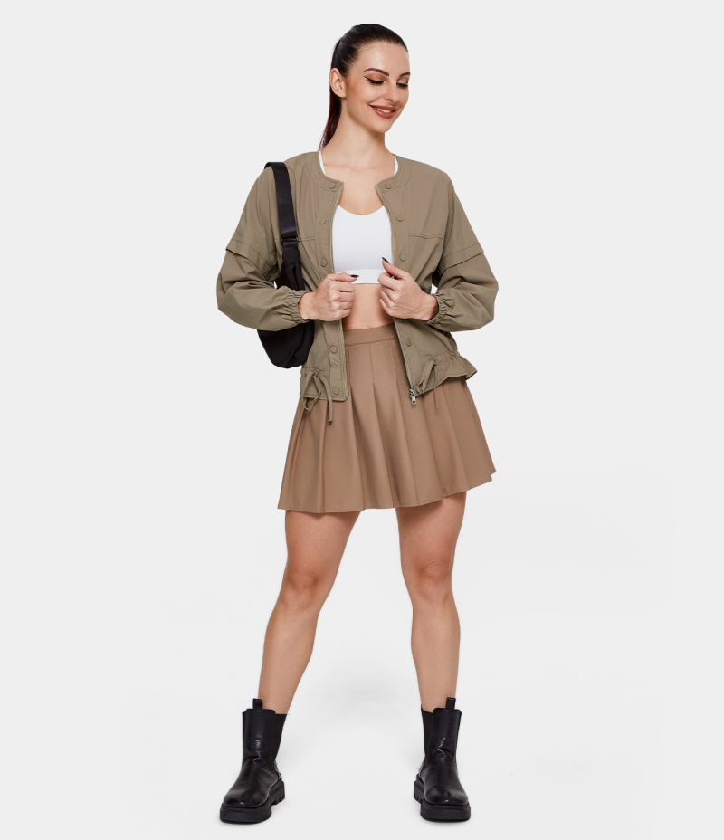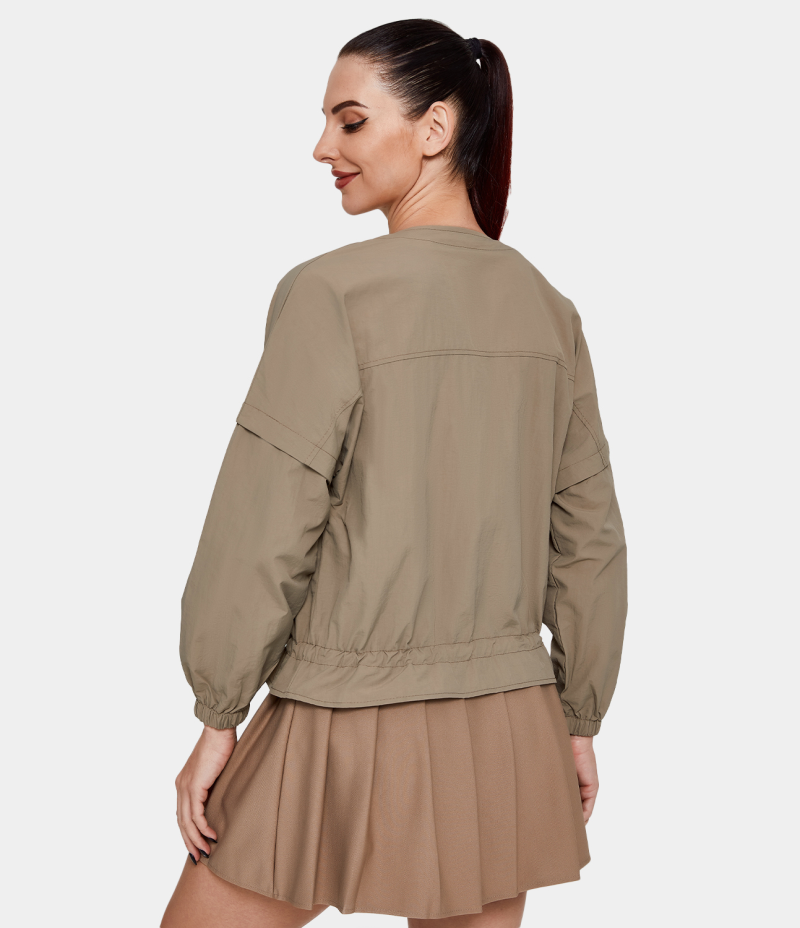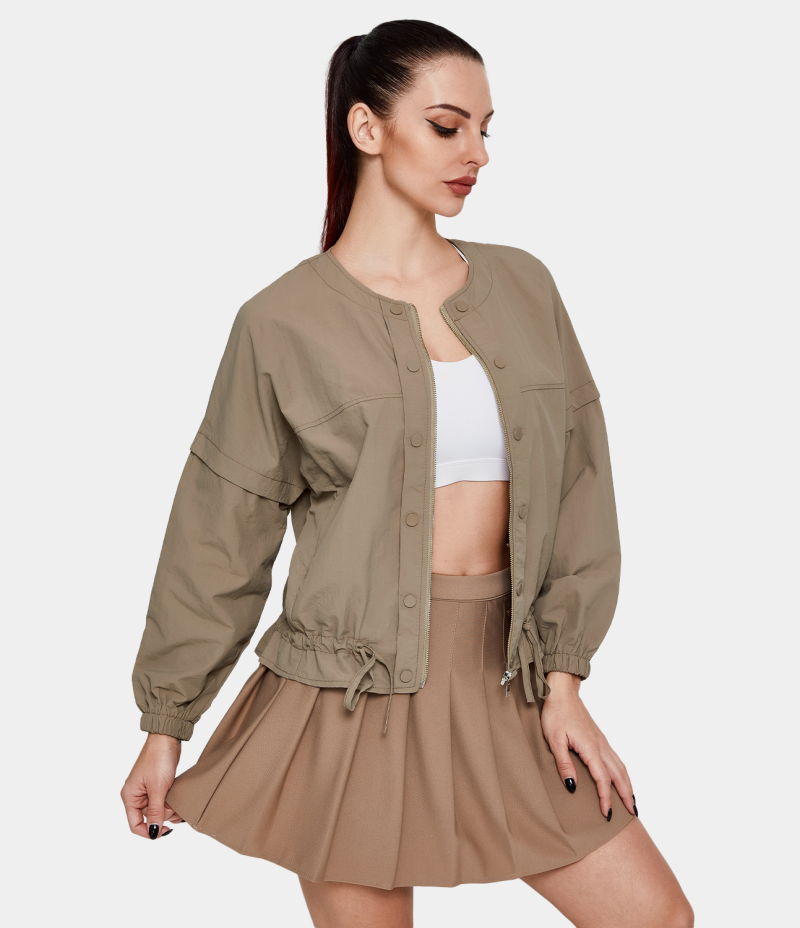 :: Halara Plain Zipper Side Pocket Drawstring Jacket Women's Tops Cloud Grey | PYHARET-23