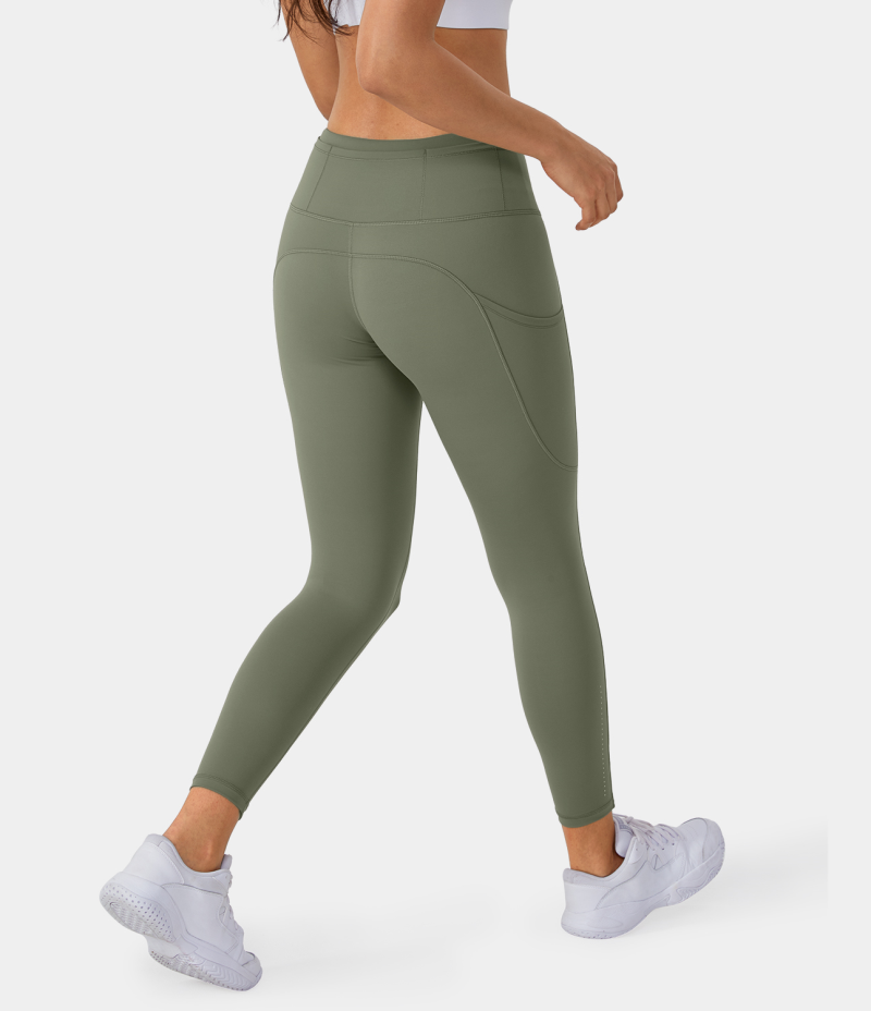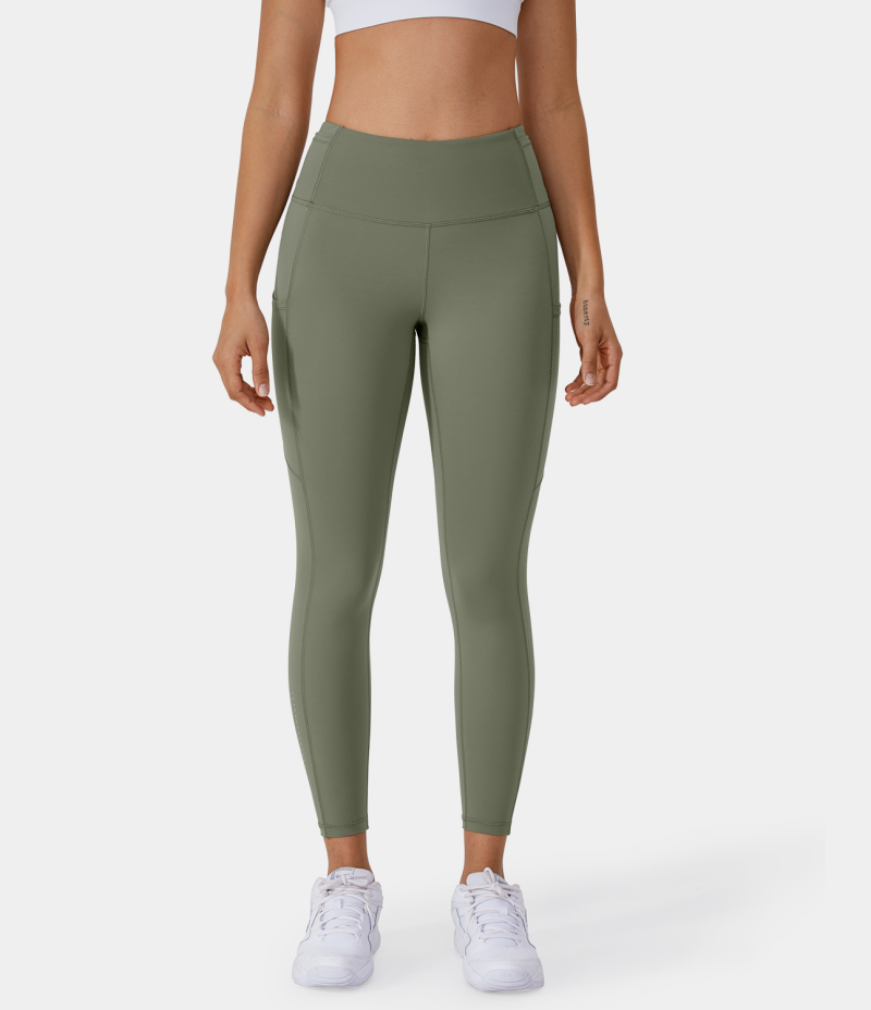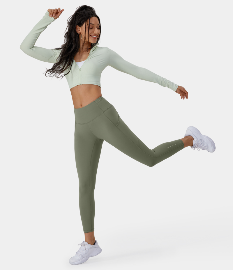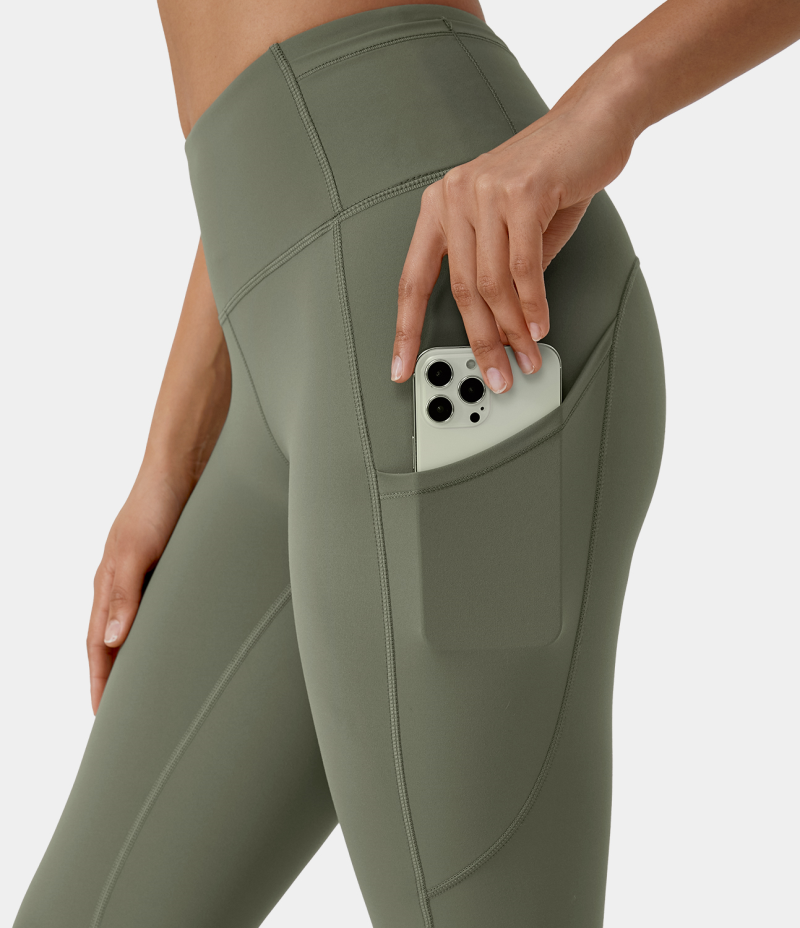 :: Halara Reflective High Waisted Functional Pocket Run Women's Leggings Deep Lichen Green | 314765-JMZ