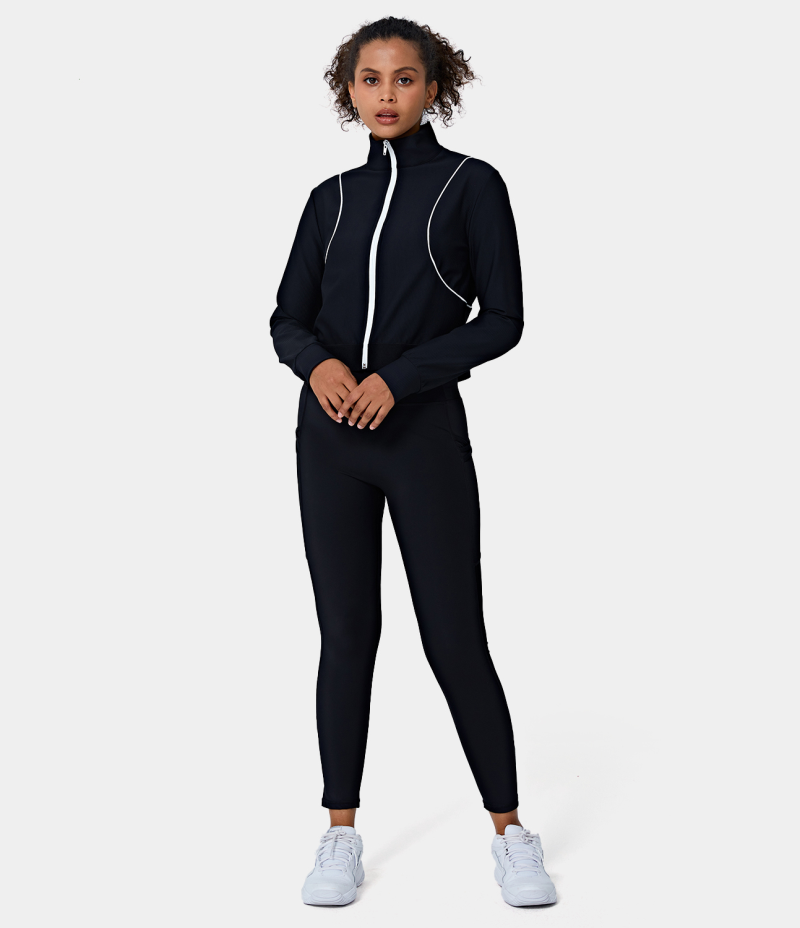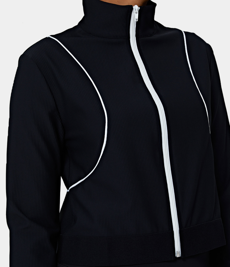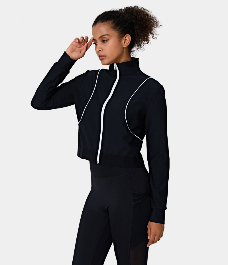 :: Halara Reflective Striped Zipper Jacket Women's Tops Black | EOUYQVG-78