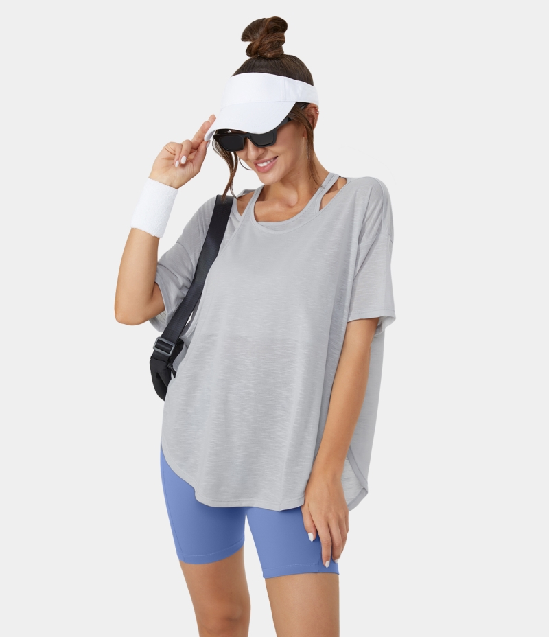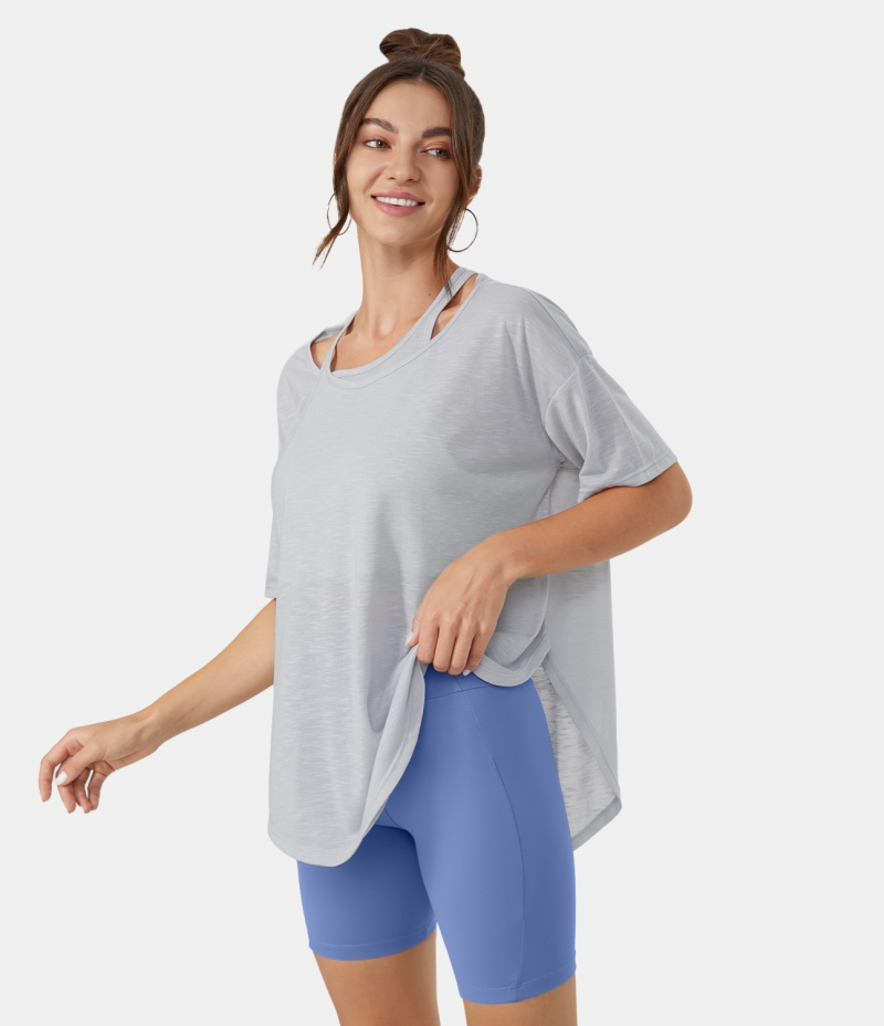 :: Halara Relaxed 2-in-1 Curved Hem Yoga Sports Women's Tops Lilac Hint | CSDYGUN-92