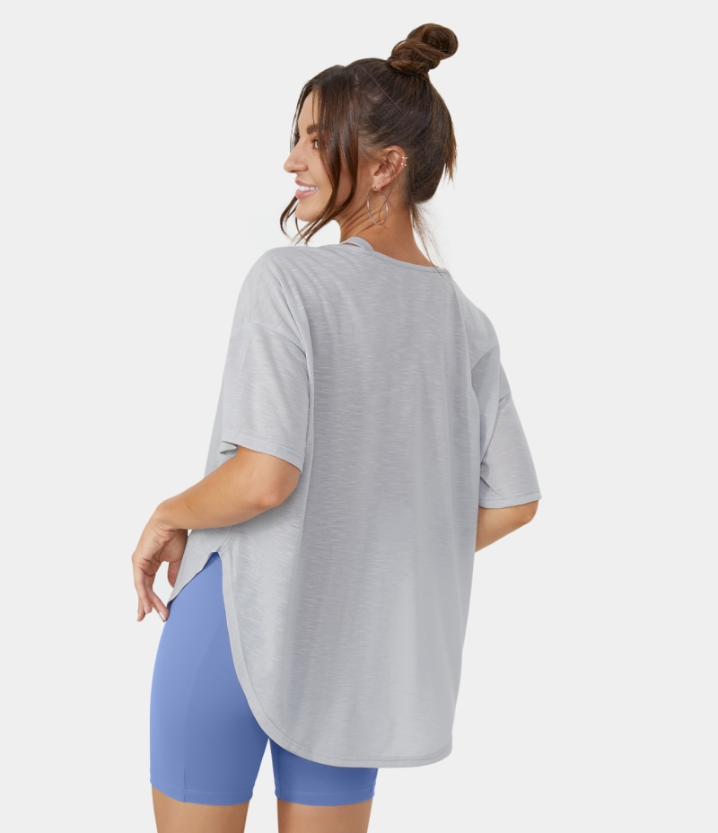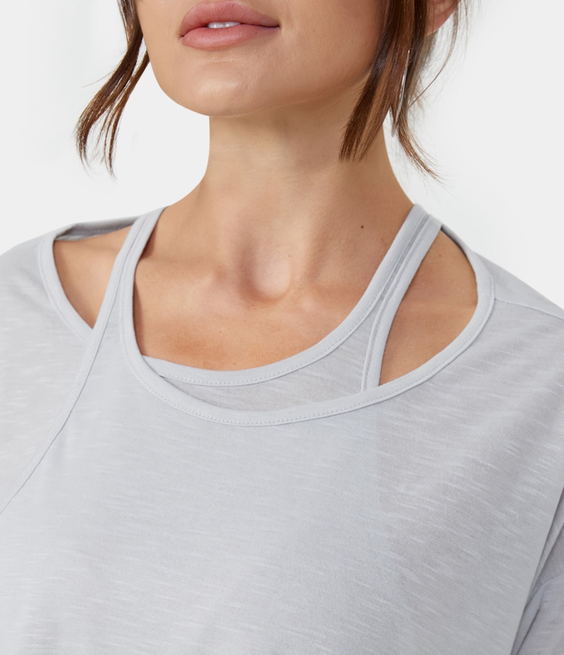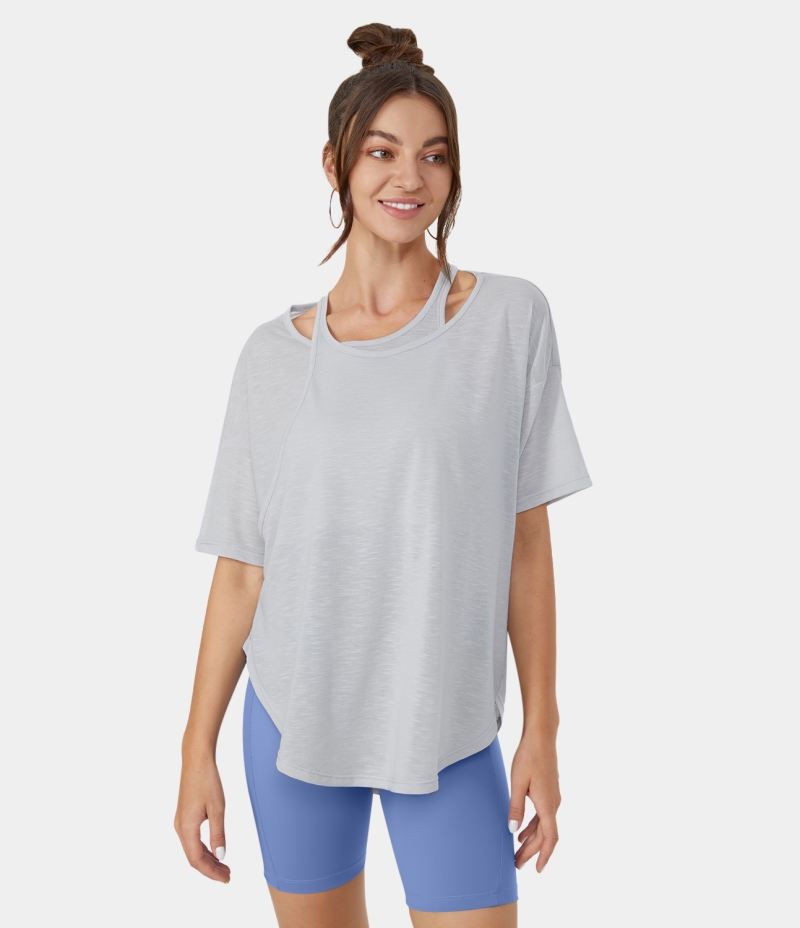 :: Halara Relaxed 2-in-1 Curved Hem Yoga Sports Women's Tops Lilac Hint | DXMLPAB-87