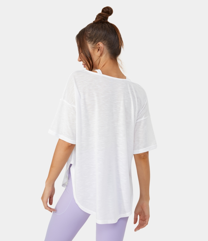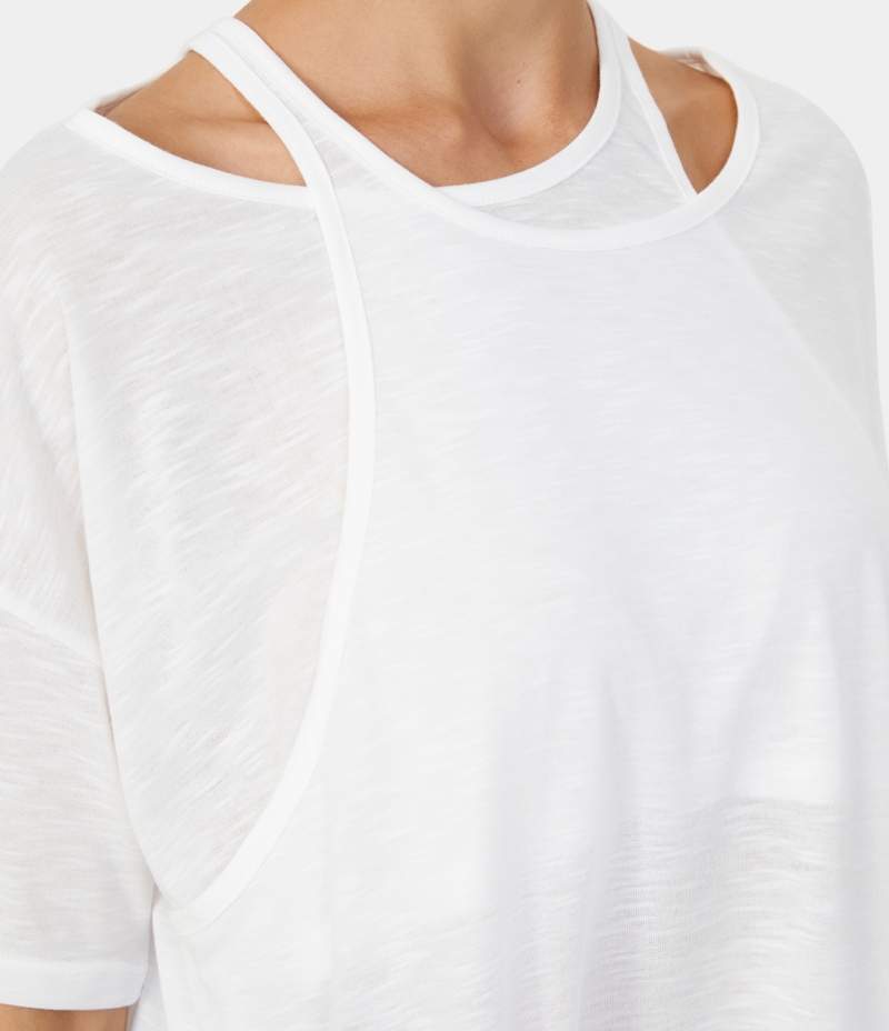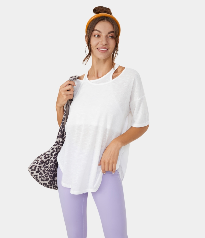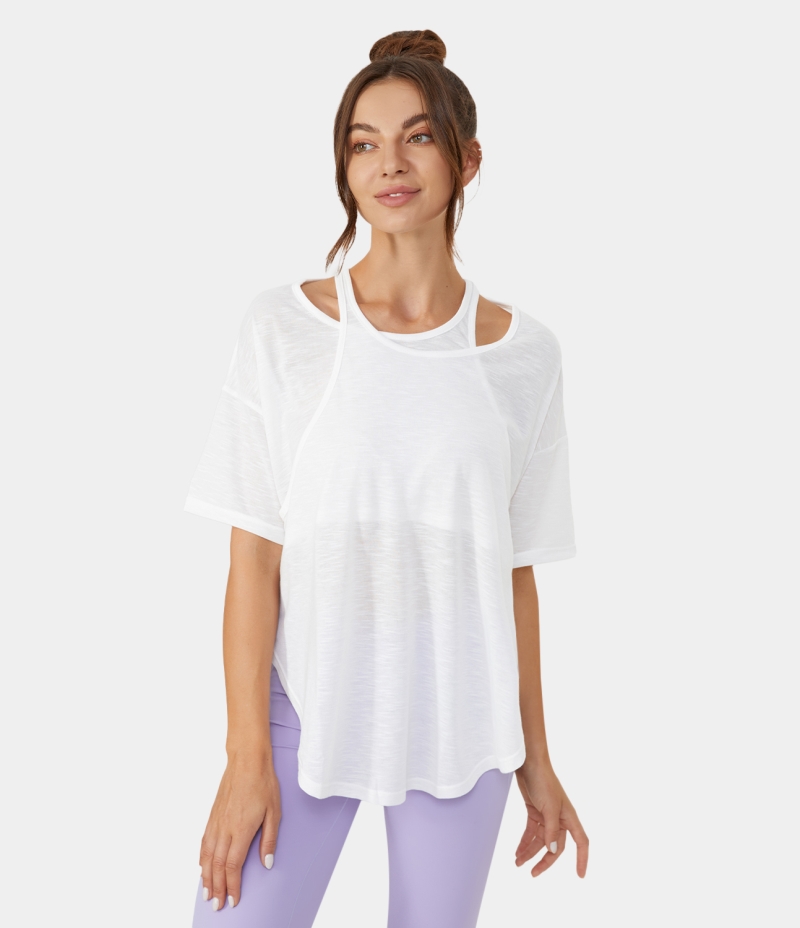 :: Halara Relaxed 2-in-1 Curved Hem Yoga Sports Women's Tops White | QCHOYDI-59