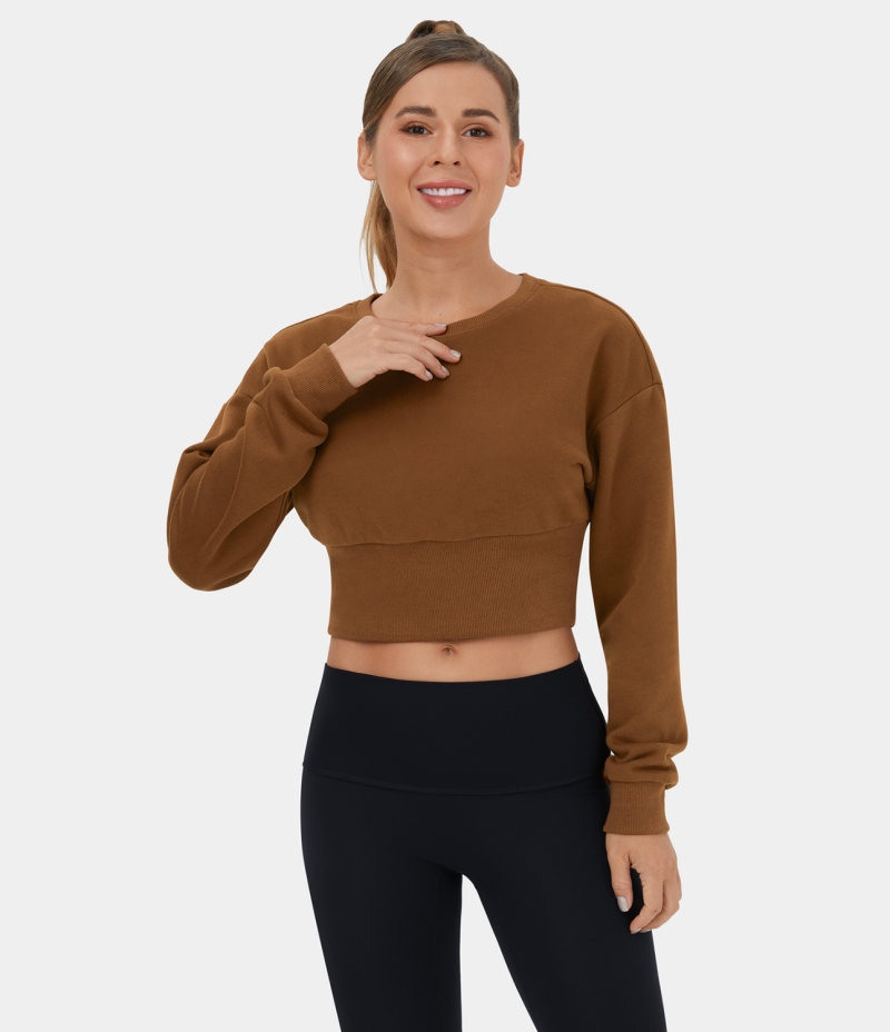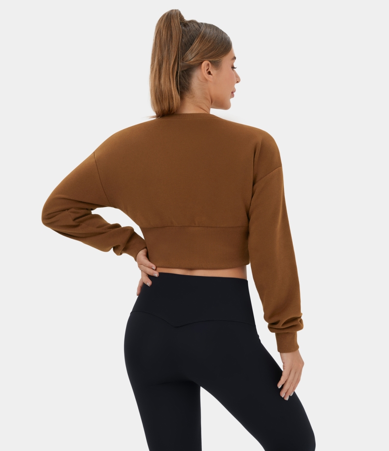Halara Removable Hood Drawstring Cropped Fleece Casual Hoodie Sports Sweatshirt Women's Tops Coffee | OAYJMHR-04