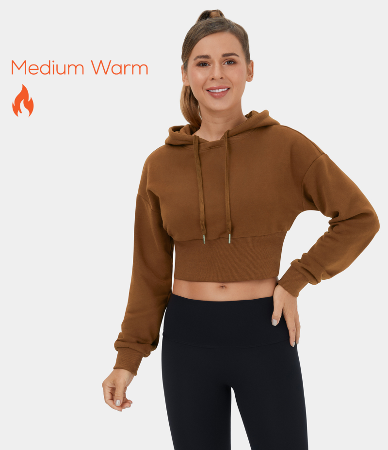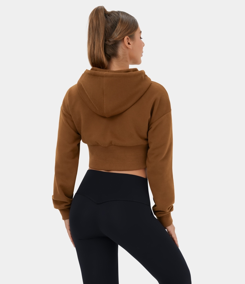 Halara Removable Hood Drawstring Cropped Fleece Casual Hoodie Sports Sweatshirt Women's Tops Coffee | VITXWNE-71