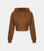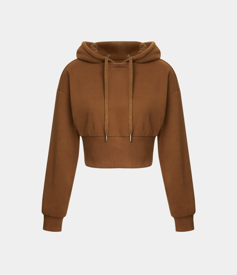 :: Halara Removable Hood Drawstring Cropped Fleece Casual Hoodie Sports Sweatshirt Women's Tops Coffee | VITXWNE-71