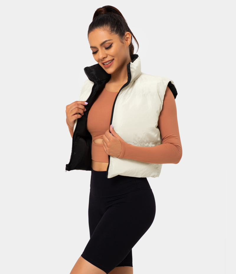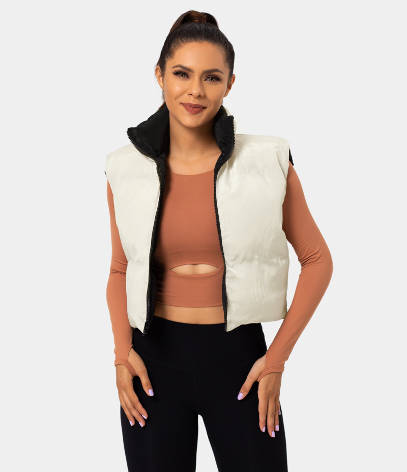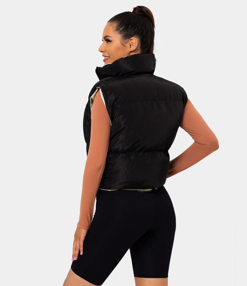 :: Halara Reversible Mock Neck Cropped Puffer Vest Women's Tops Black | JVRCTDS-95