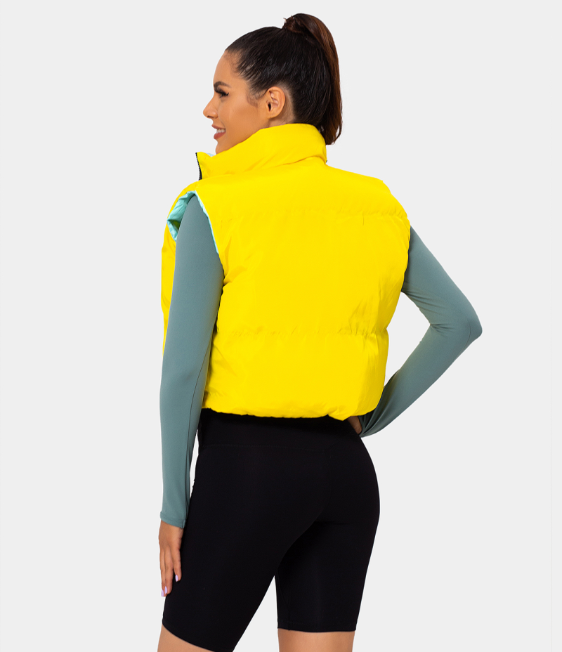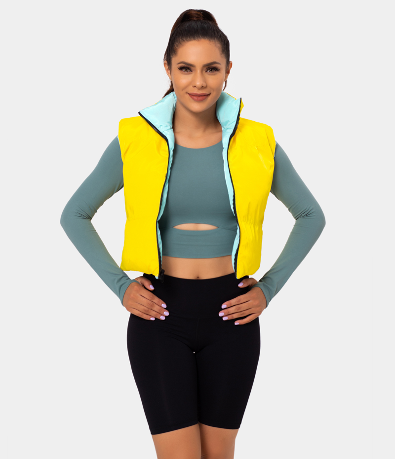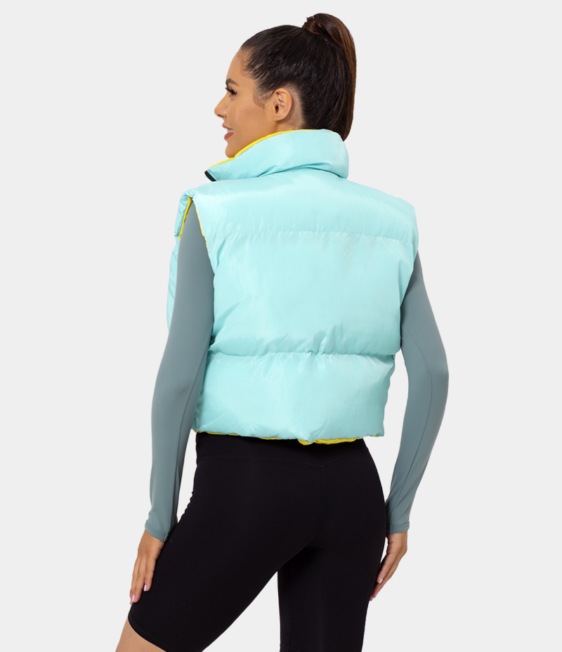 :: Halara Reversible Mock Neck Cropped Puffer Vest Women's Tops Robin Egg Blue | YNMQCFB-52