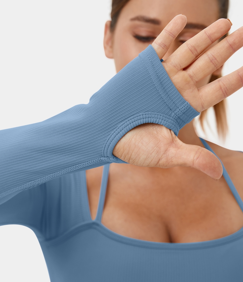 :: Halara Ribbed Halter Strap Thumb Hole Cropped Yoga Sports Women's Tops Allure | TUOVPJW-53
