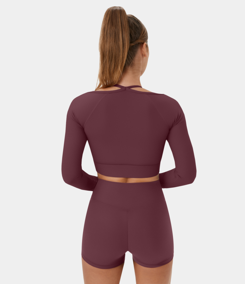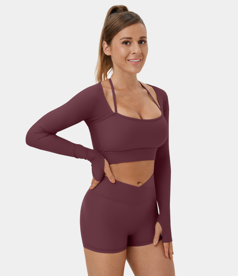 :: Halara Ribbed Halter Strap Thumb Hole Cropped Yoga Sports Women's Tops Andorra | OCUTXMR-34