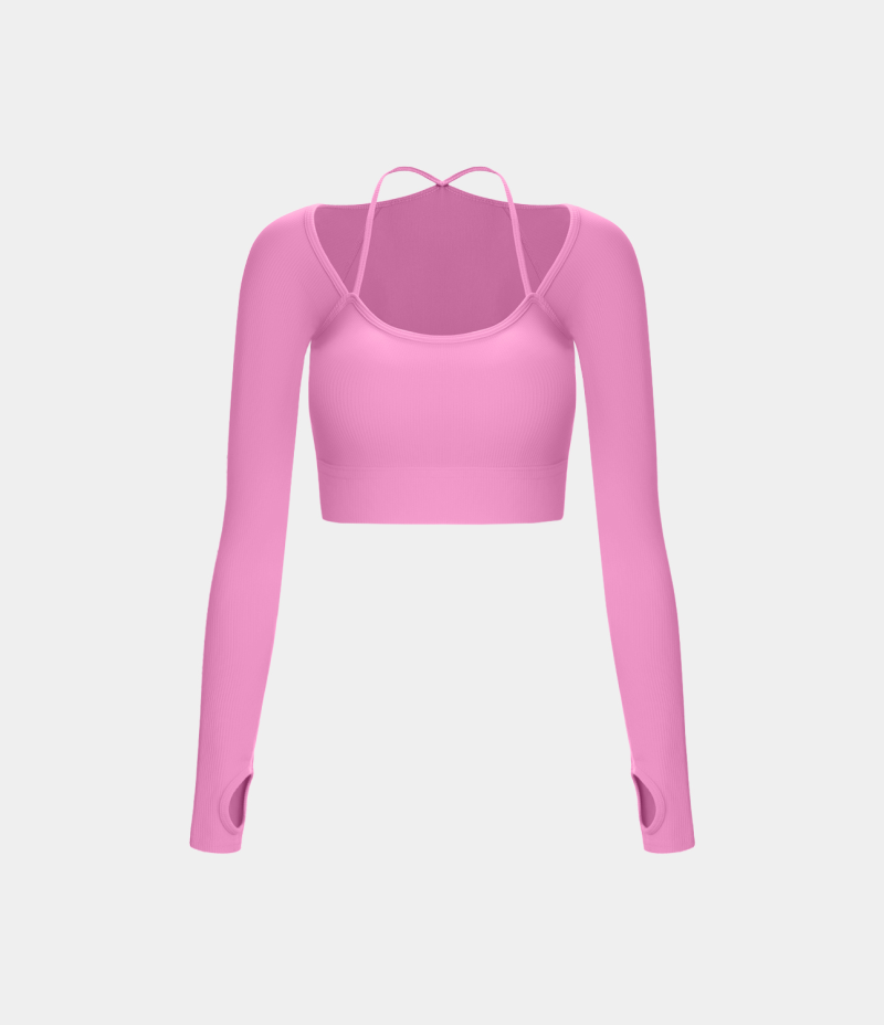 :: Halara Ribbed Halter Strap Thumb Hole Cropped Yoga Sports Women's Tops Bonbon | QEPFBVA-05