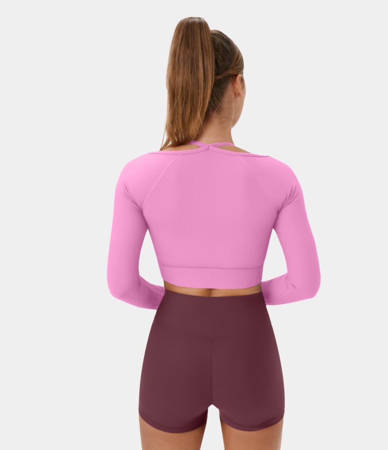 :: Halara Ribbed Halter Strap Thumb Hole Cropped Yoga Sports Women's Tops Bonbon | SQEJUTP-34