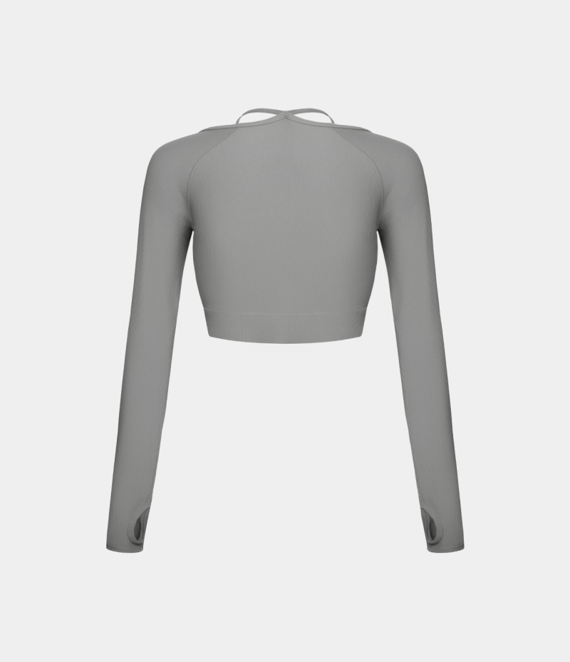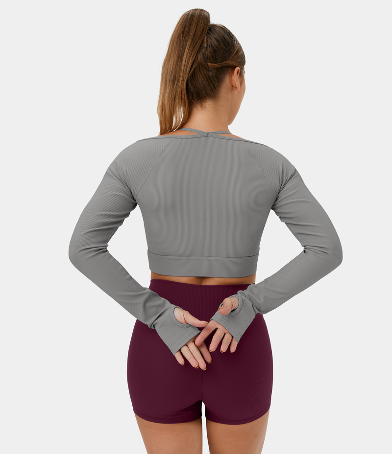 :: Halara Ribbed Halter Strap Thumb Hole Cropped Yoga Sports Women's Tops Formal Gray | OPVNJDG-50