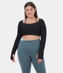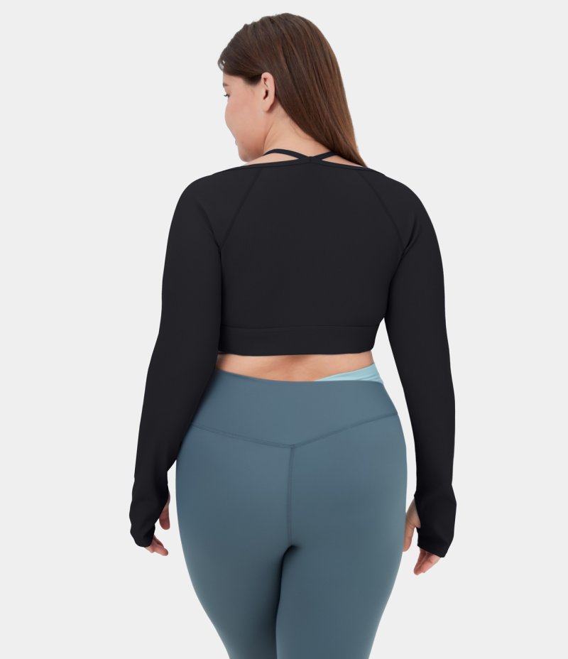 :: Halara Ribbed Halter Strap Thumb Hole Plus Size Cropped Yoga Sports Women's Tops Black | IGCTQHF-63