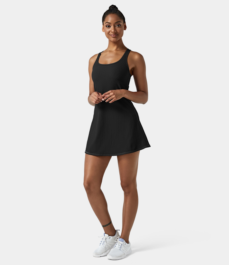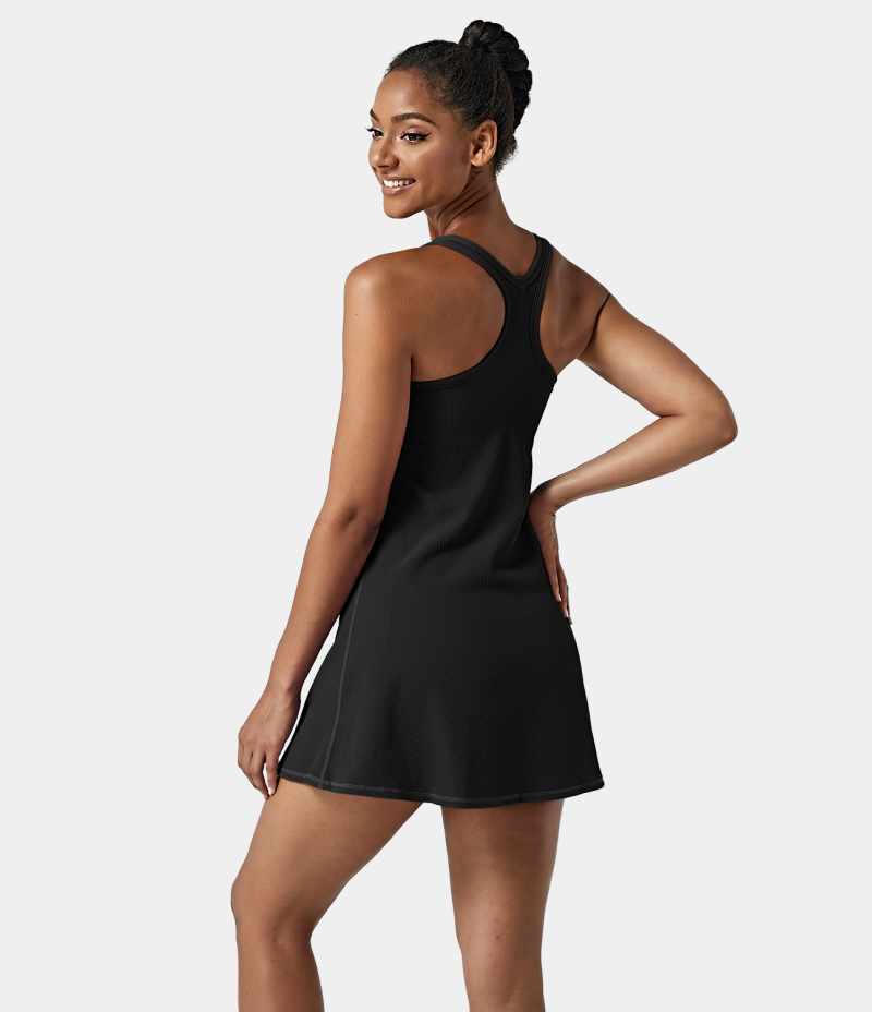 :: Halara Ribbed Knit 2-in-1 Side Pocket Backless Racerback Sports-Malibu Women's Dress Midnight Adventure - Black | 987416-GEL