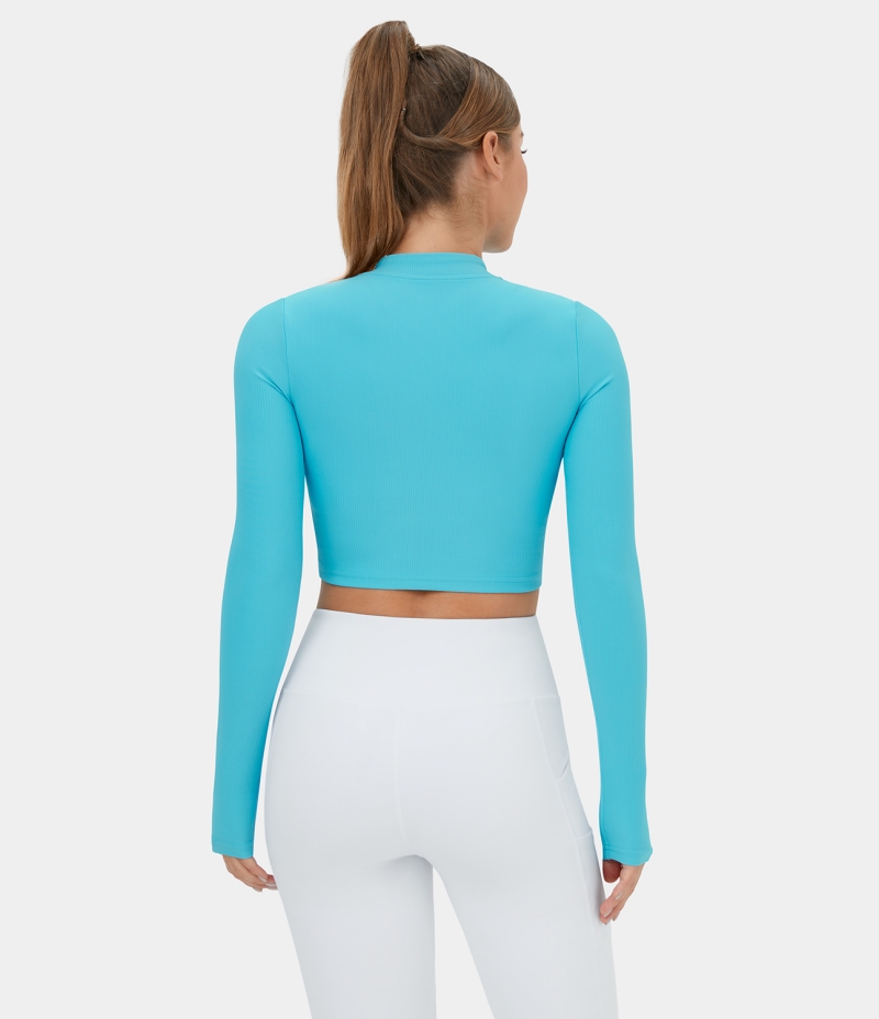 :: Halara Ribbed Knit 2-Way Zipper Cropped Yoga Jacket Women's Tops Tanager Turquoise | VGFWNMD-56
