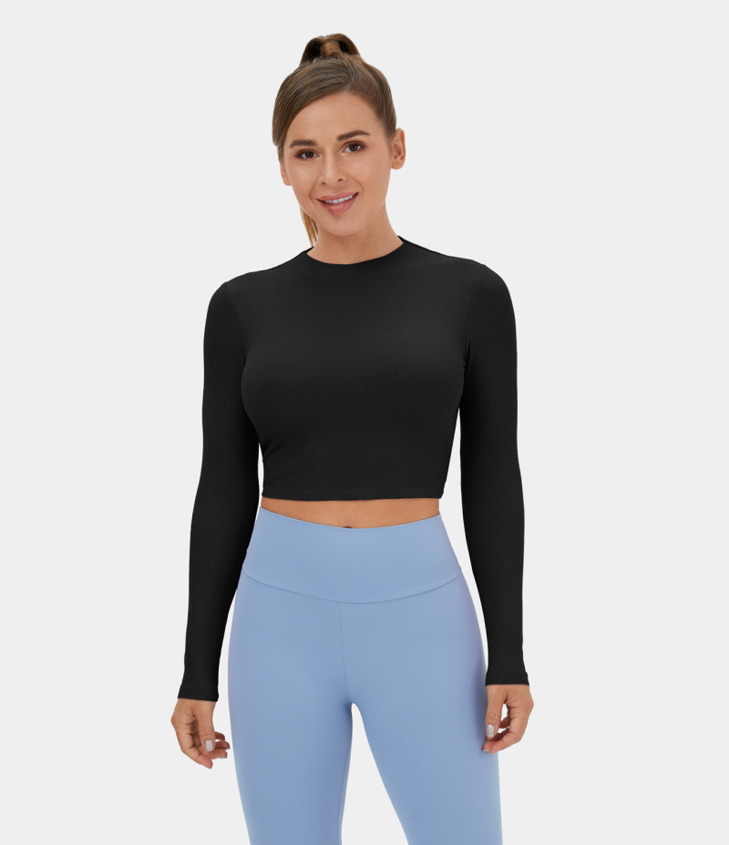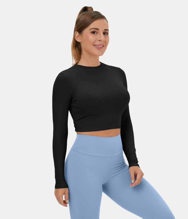 Halara Ribbed Knit Backless Twisted Cropped Yoga Sports Women's Tops Black | XLDJANQ-73