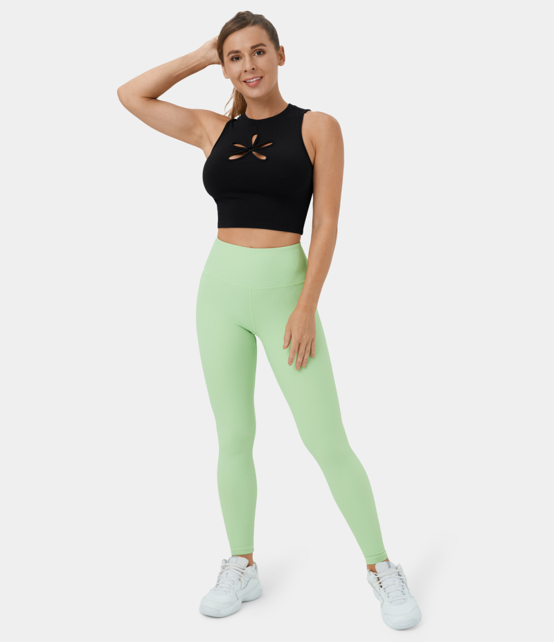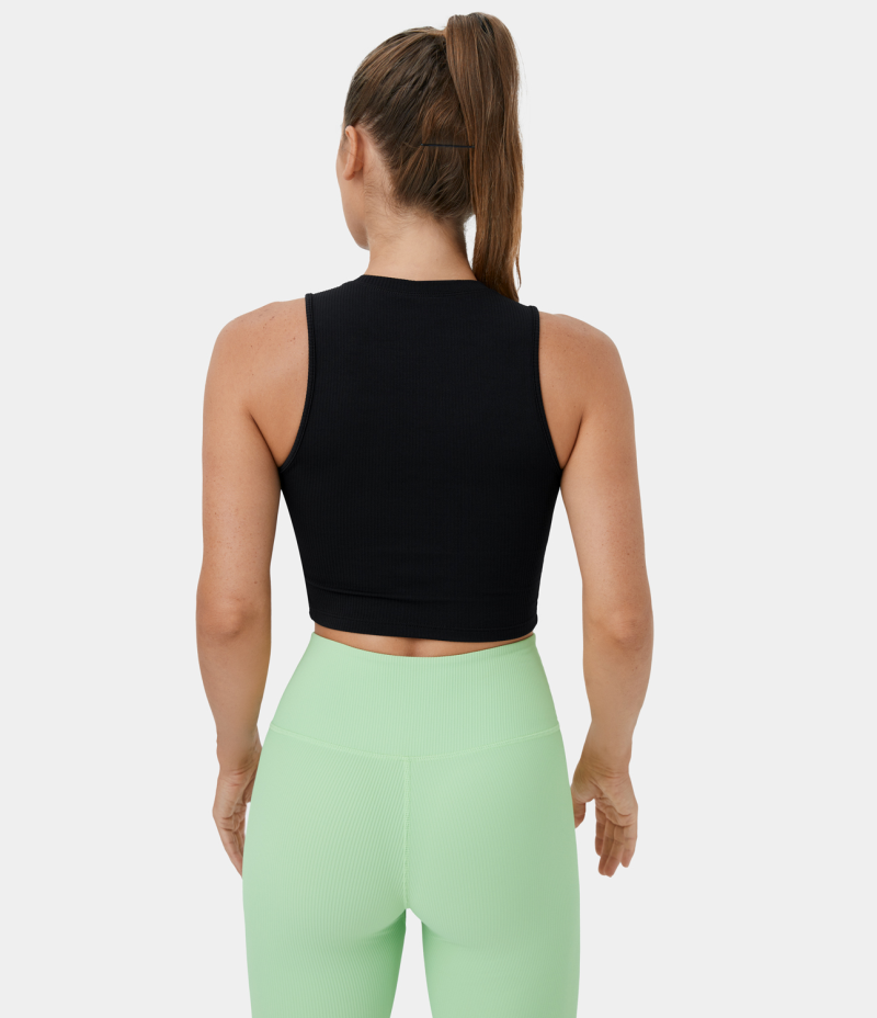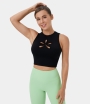 :: Halara Ribbed Knit Cut Out Cropped Barre Ballet Dance Tank Women's Tops Black | JRMKXPI-82
