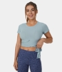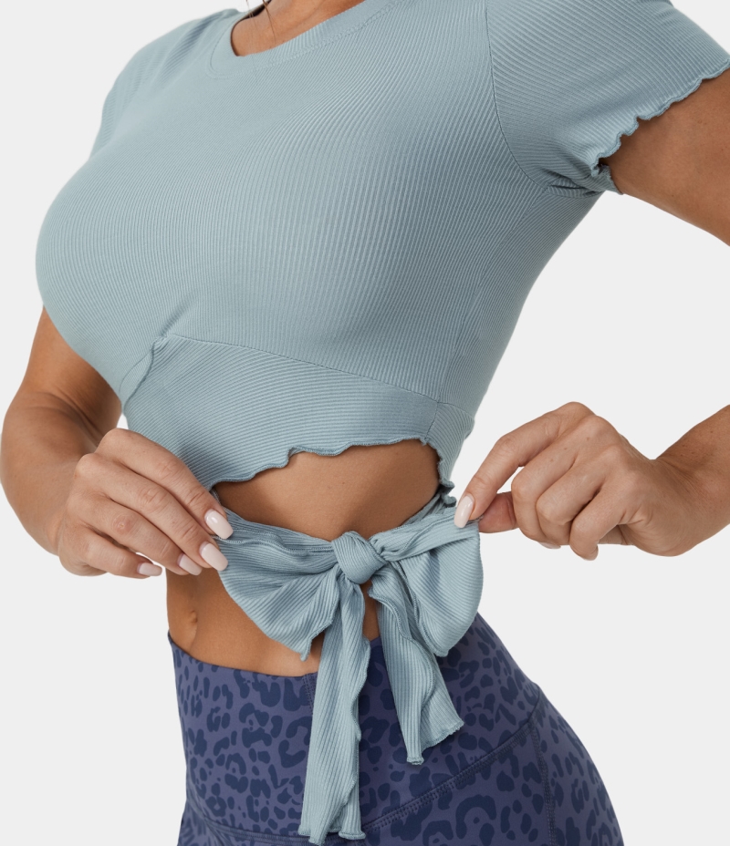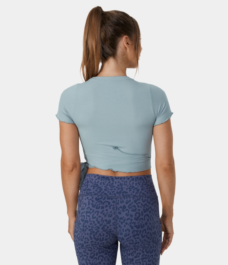 :: Halara Ribbed Knit Frill Lace Up Cut Out Cropped Barre Ballet Dance Tank Women's Tops Haze Blue | ONDRKSC-80