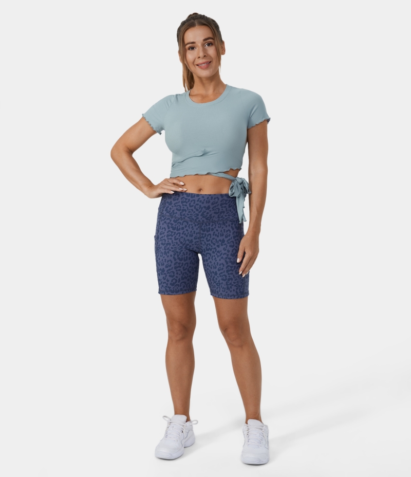 Halara Ribbed Knit Frill Lace Up Cut Out Cropped Barre Ballet Dance Tank Women's Tops Haze Blue | ONDRKSC-80